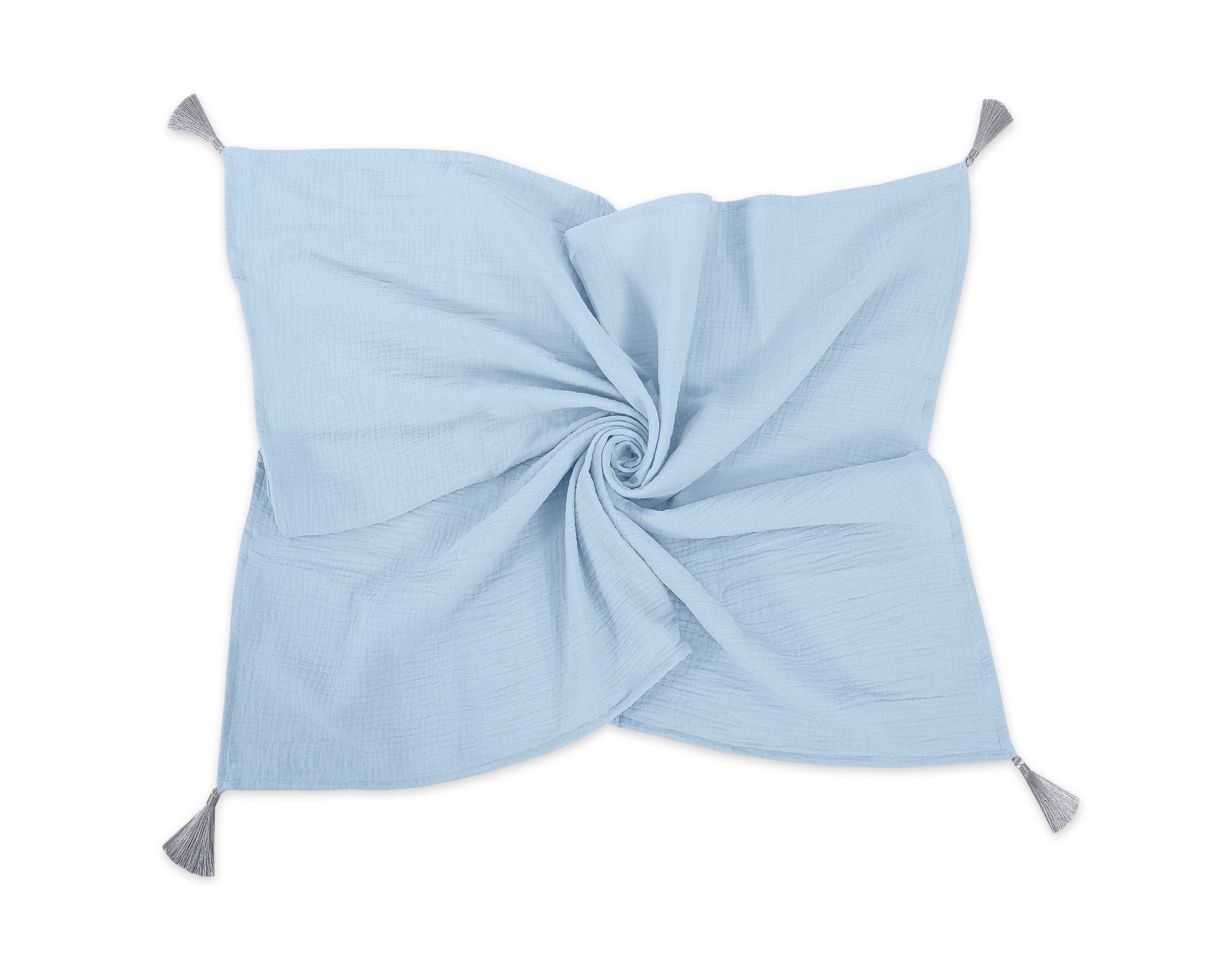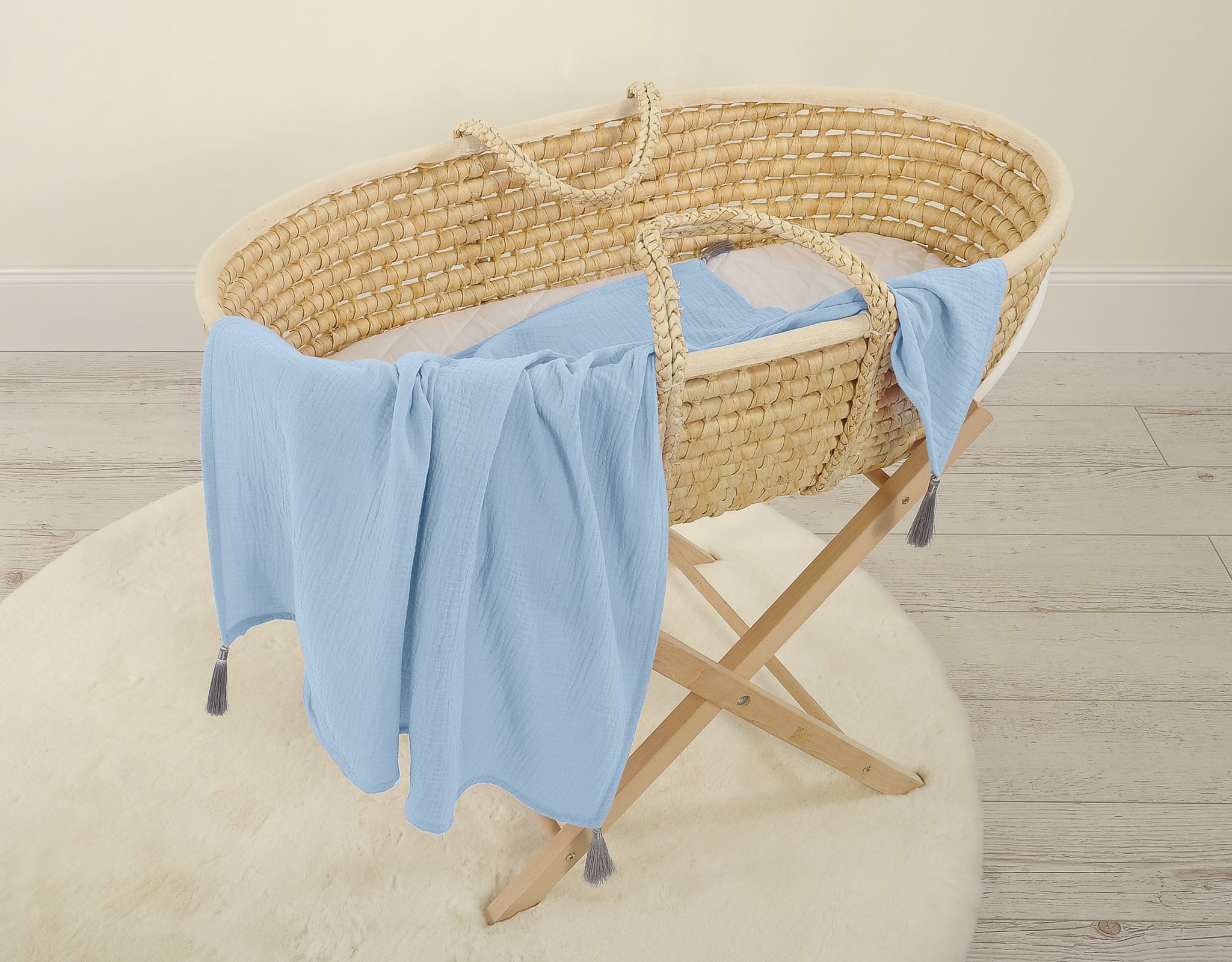 Lightweight muslin blanket for babies. Made of durable 100% certified cotton crepe muslin. Muslin is nice and pleasant to touch. It does not irritate the delicate baby skin. At the same time it is extremely easy to use.