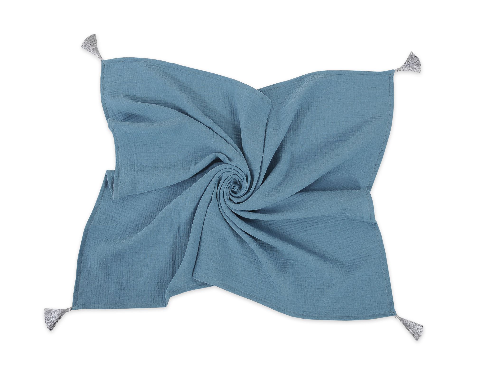 Muslin blanket for kids with tassels – pastel blue