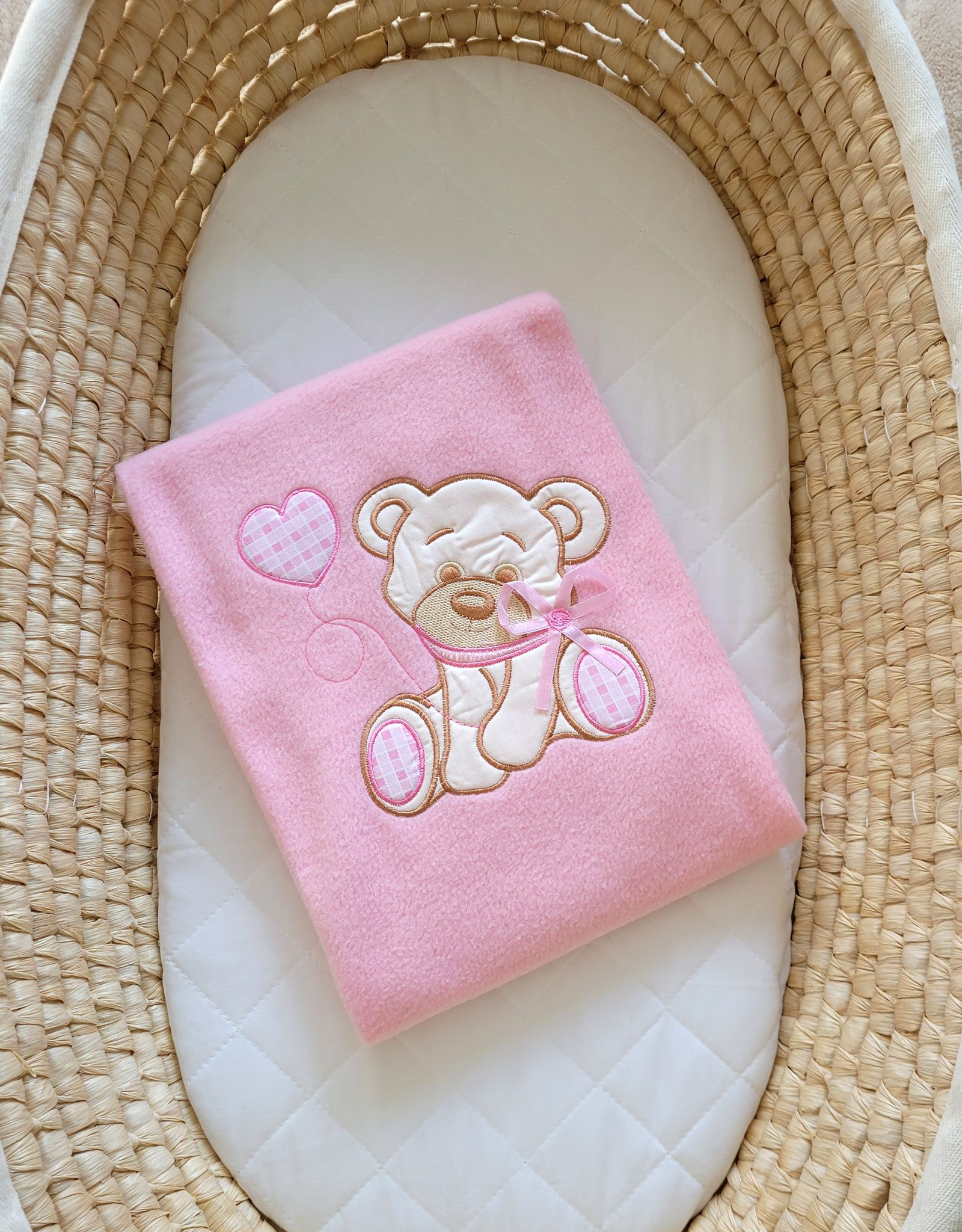 Polar fleece blanket for babies – Bear with bow pink