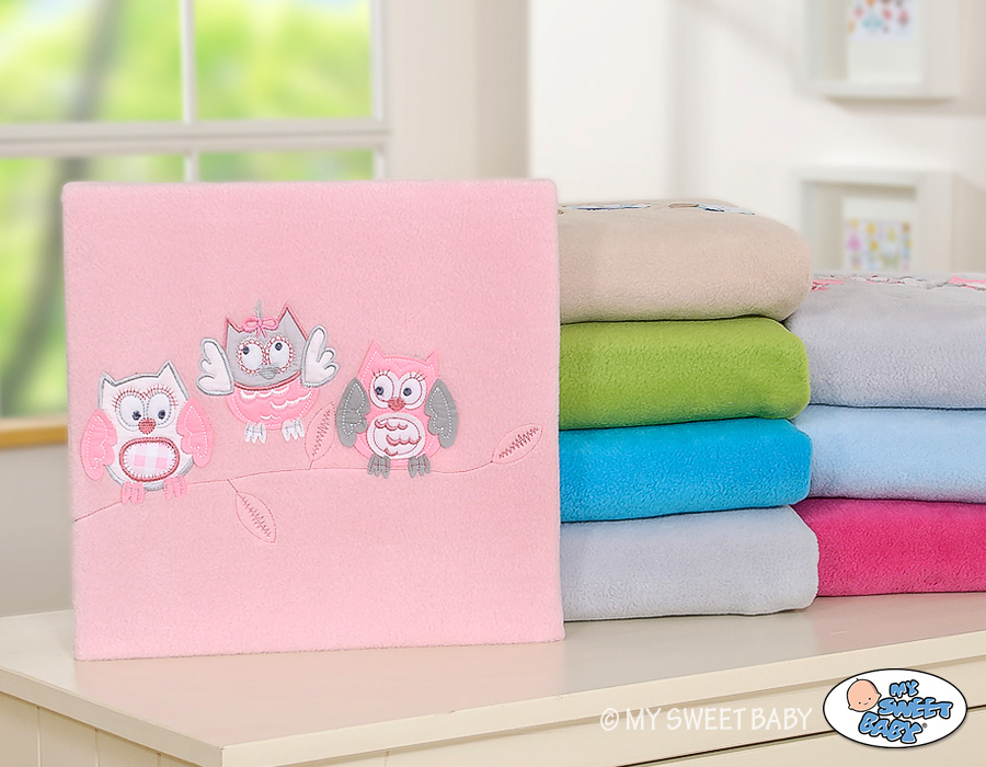 Polar fleece blanket for babies – Owls Bigi Zibi & Adele- bright pink
