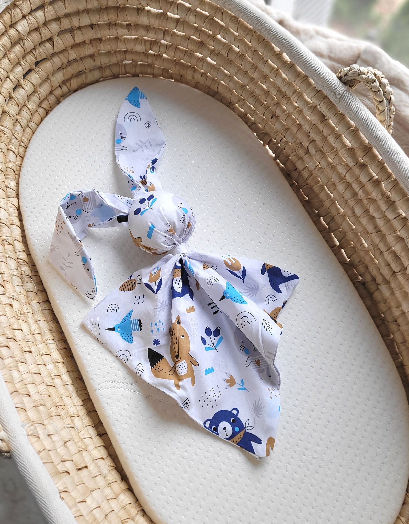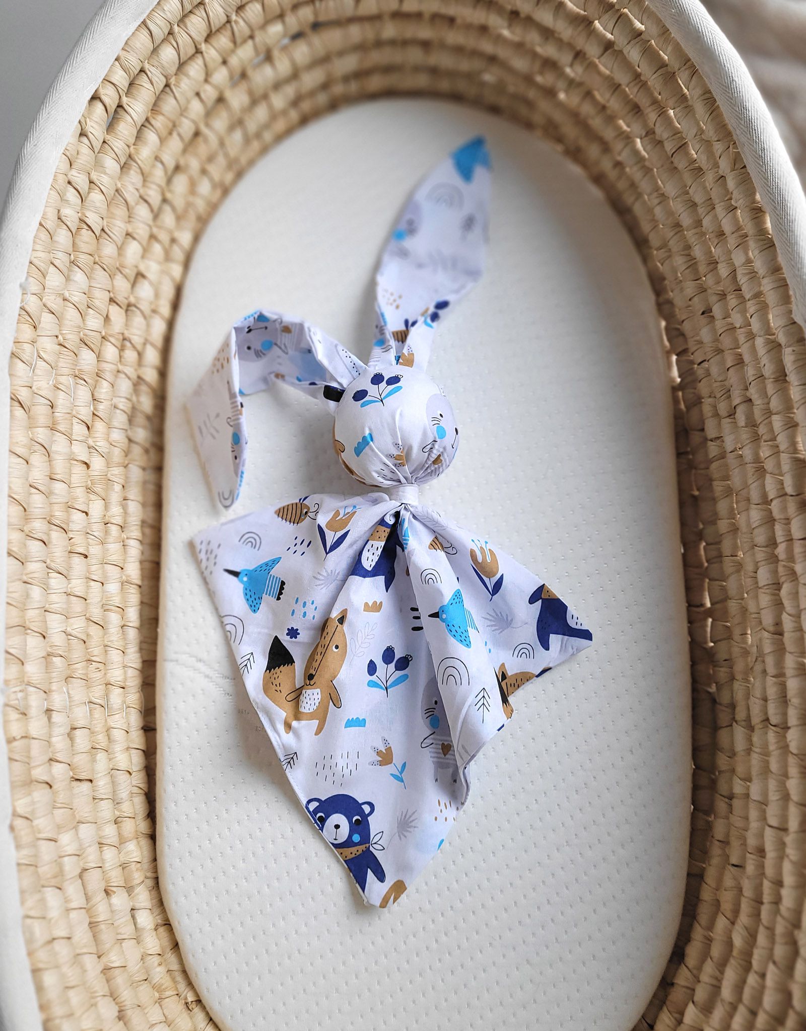 Lovely soft cuddly blanket for Baby – bunny with long ears. The cuddly blanket is made of certified cotton. Double layer of soft fabric for greater durability. The Bunny cuddle blanket is the perfect first cuddle, easy to grip and soft to cuddle. The cuddly bunny blanket also makes teething easier for your baby.