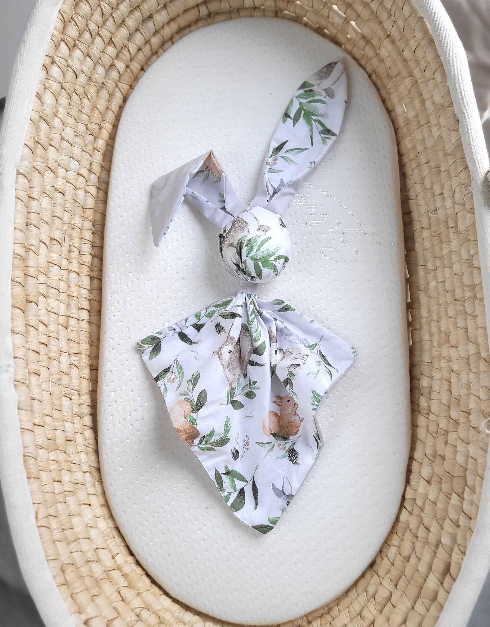 Soft cosy cuddly bunny blanket in cotton – Woodland green/grey