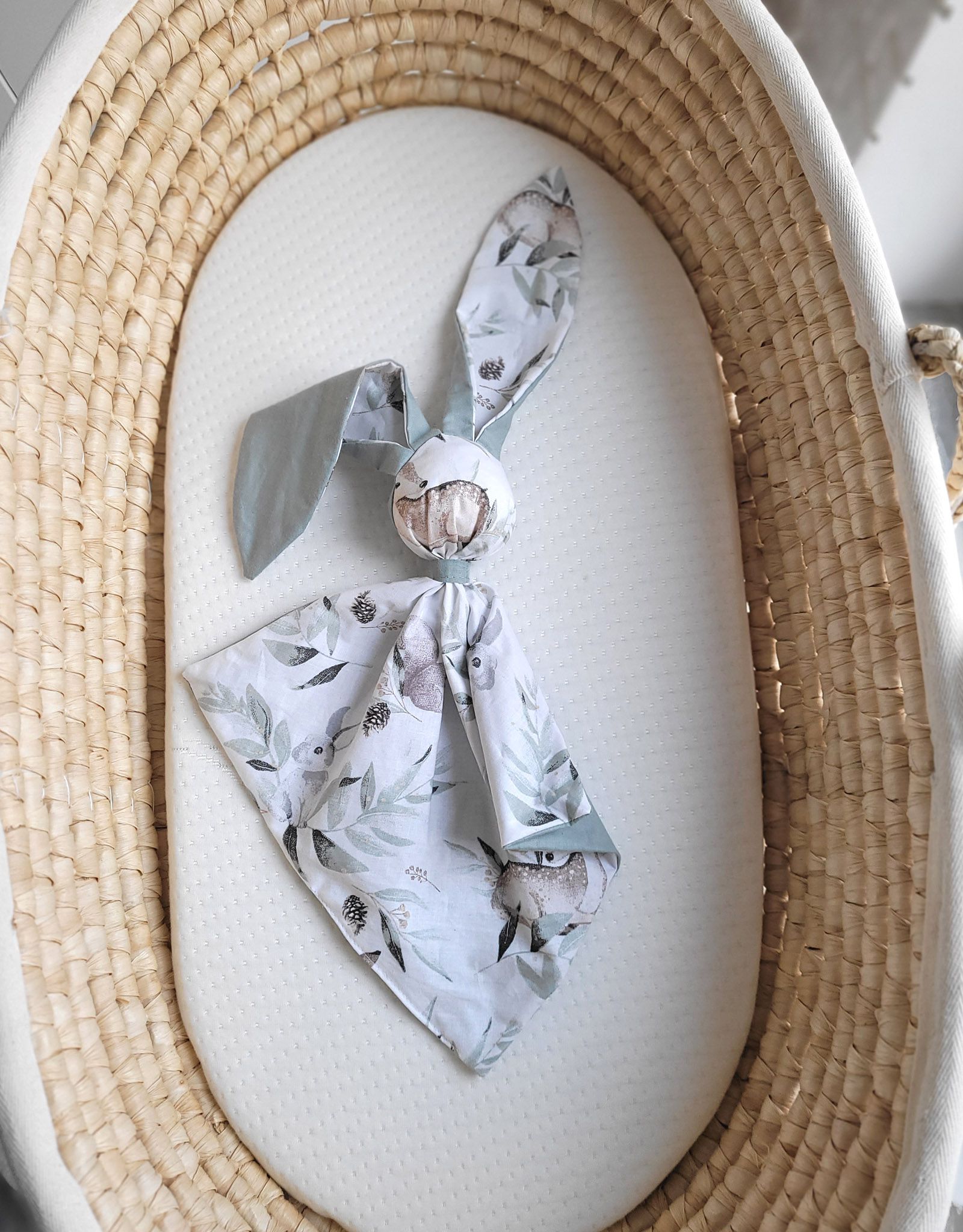 Soft cosy cuddly bunny blanket in cotton – Woodland olive/pastel green