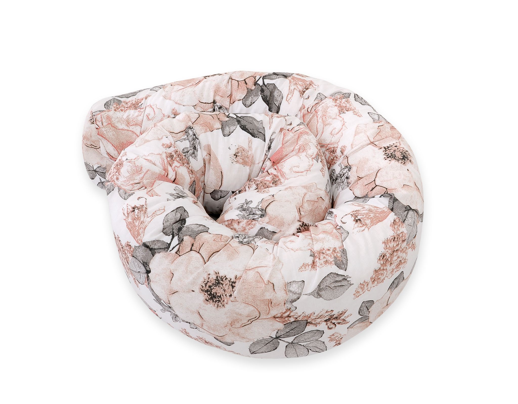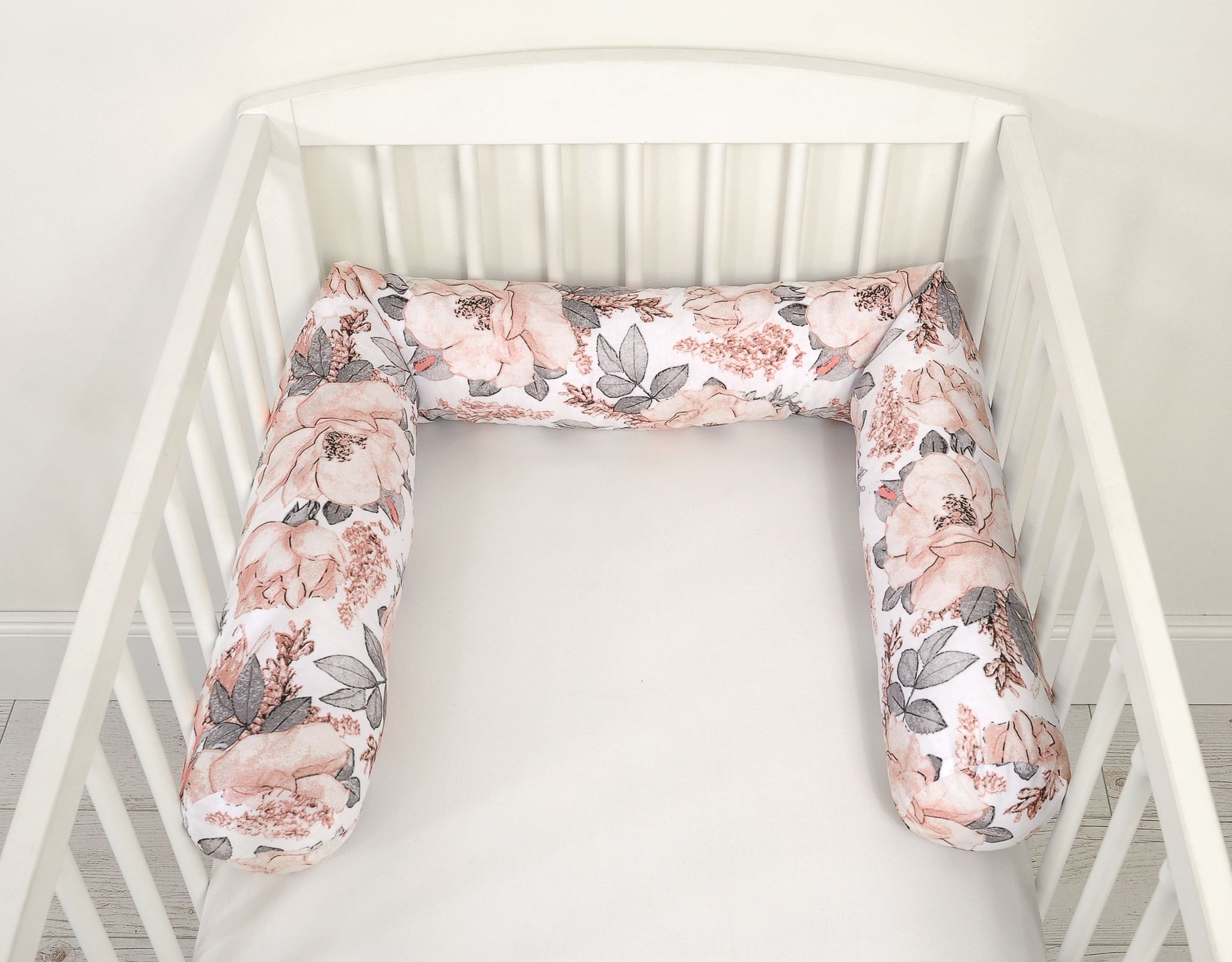 Universal roller bumper for baby cot. A soft long bumper that easily adjusts to any shape. The rolled up bumper fits beautifully in a Moses basket or in a baby cot. The bumper may lay upright in a larger bed or sofa and perfectly protects from the cold of the wall. Beautiful printed patterns and interesting colors perfectly decorate your baby’s room.