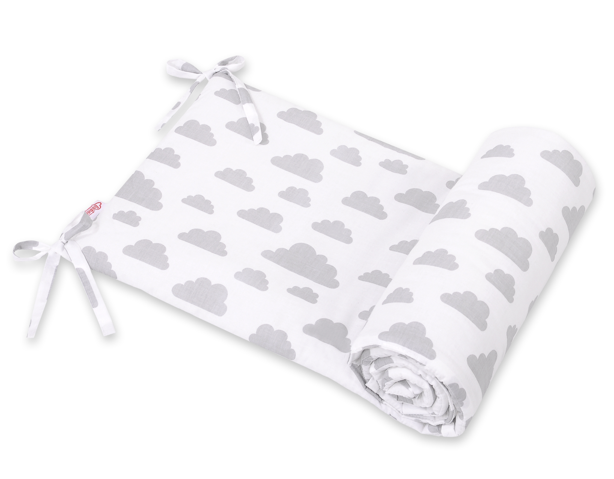 Specially constructed and with additional stitching, so that it perfectly fits both the 120×60 cm cot and the larger 140×70 cm baby cot. The bumper is filled with a layer of elastic anti-allergic silicone nonwoven fabric, thanks to which it fits nicely on the bed. The nonwoven fabric is Ökotex certified. The cover of the bumper is made of the highest quality cotton, which does not lose its properties even after many washes. Cotton strong straps allow for easy and solid attachment of the bumper.