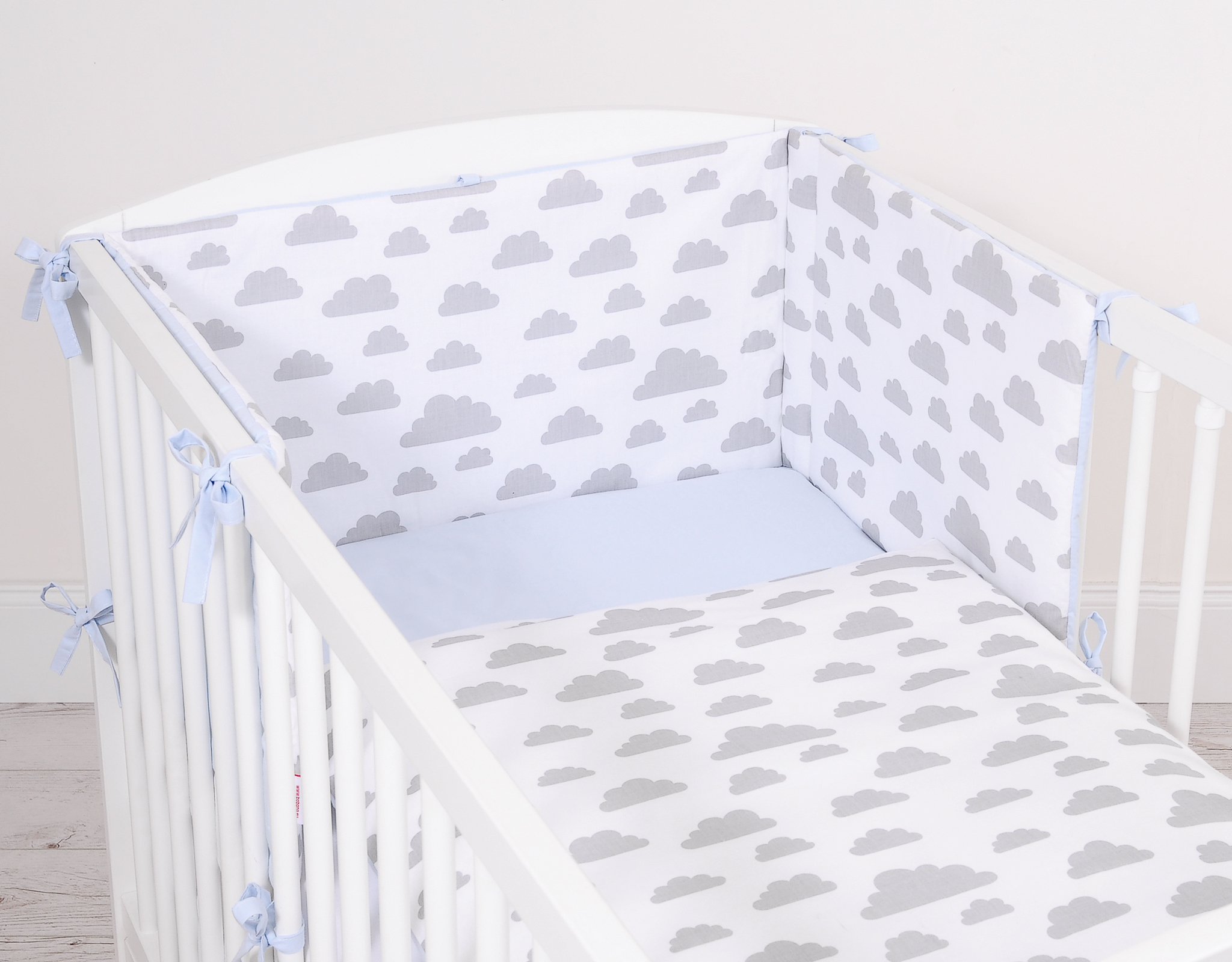 Specially constructed and with additional stitching, so that it perfectly fits both the 120×60 cm cot and the larger 140×70 cm baby cot. The bumper is filled with a layer of elastic anti-allergic silicone nonwoven fabric, thanks to which it fits nicely on the bed. The nonwoven fabric is Ökotex certified. The cover of the bumper is made of the highest quality cotton, which does not lose its properties even after many washes. Cotton strong straps allow for easy and solid attachment of the bumper.
