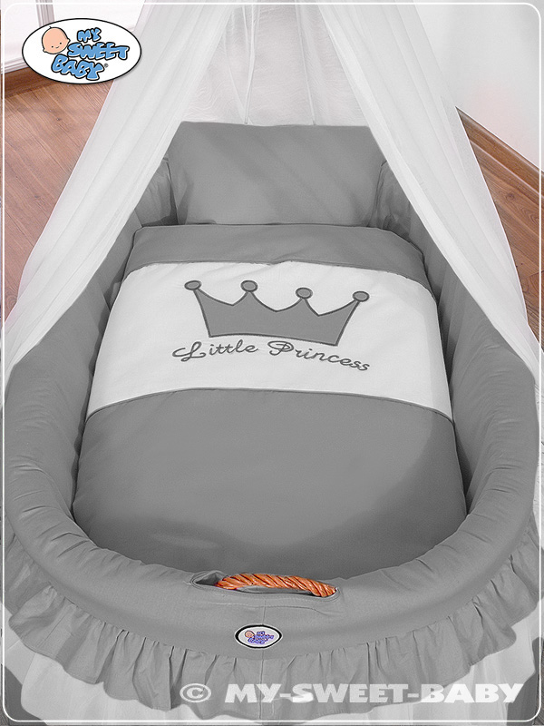 Cover set 4 pcs for Moses Basket Wicker drape crib- Little Prince Princess anthracite