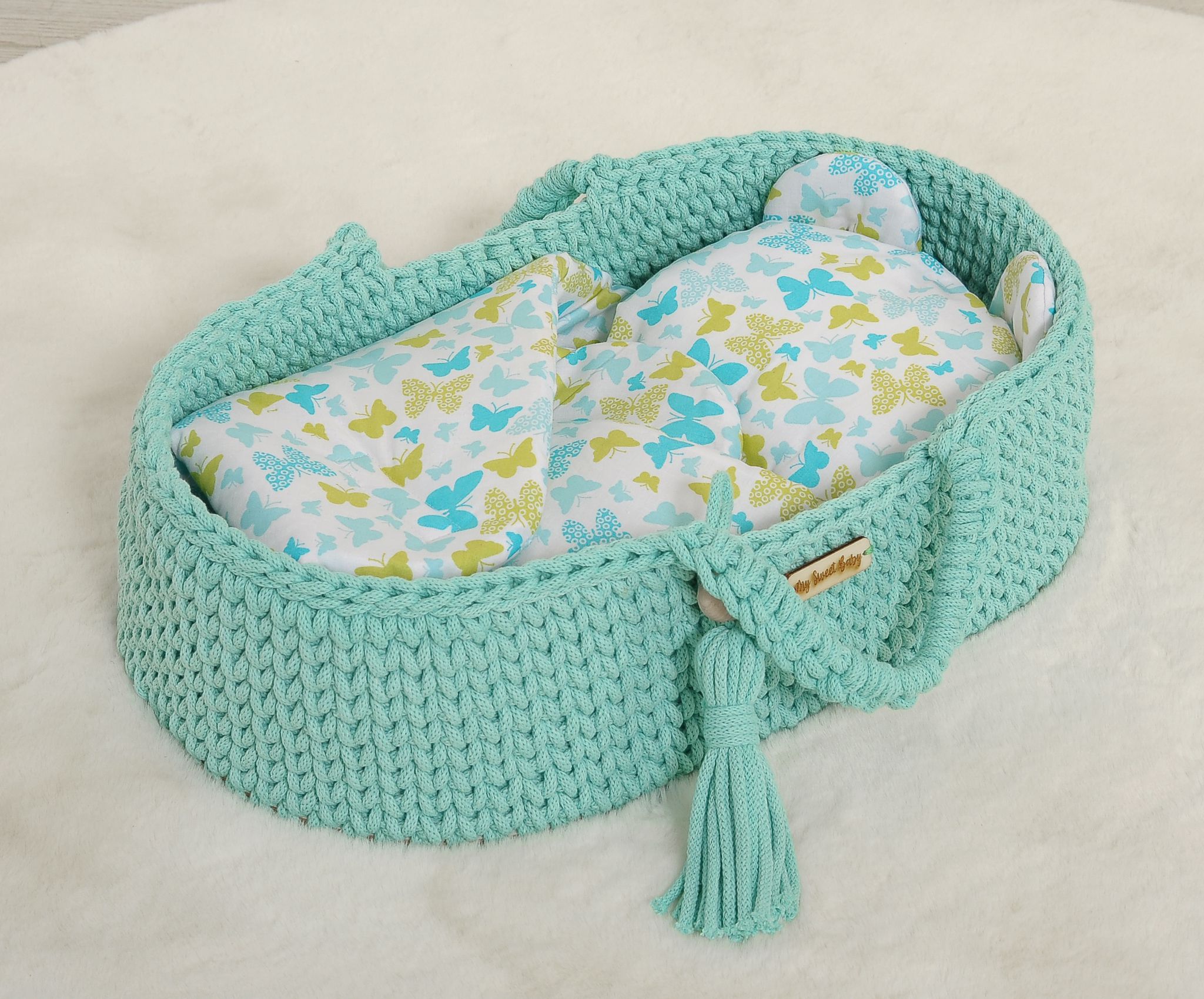 A beautiful swaddle blanket for dolls. Fits in the pram, cradle, Moses basket. Miniature baby swaddle blanket, same top quality workmanship and certified raw materials. Great fun with dolls for every girl!