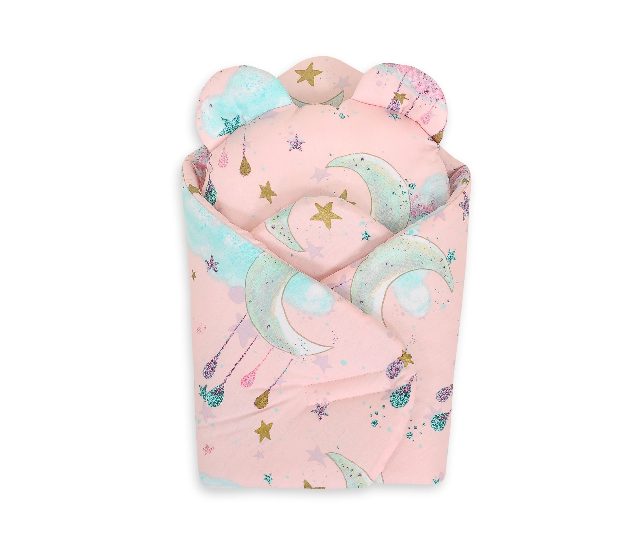 Doll’s swaddling cone with pillow – moons pink