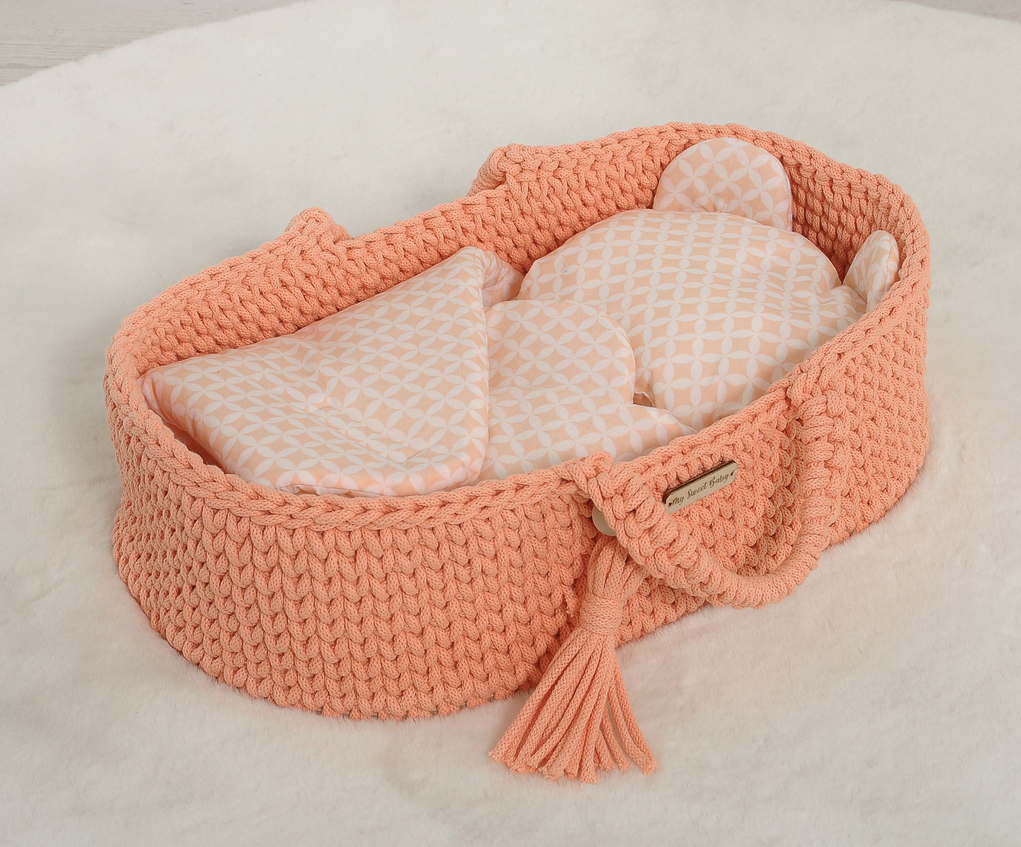 The set also includes a rounded cushion with ears, in the shape of a teddy bear’s head. An adorable set for wonderful doll play.