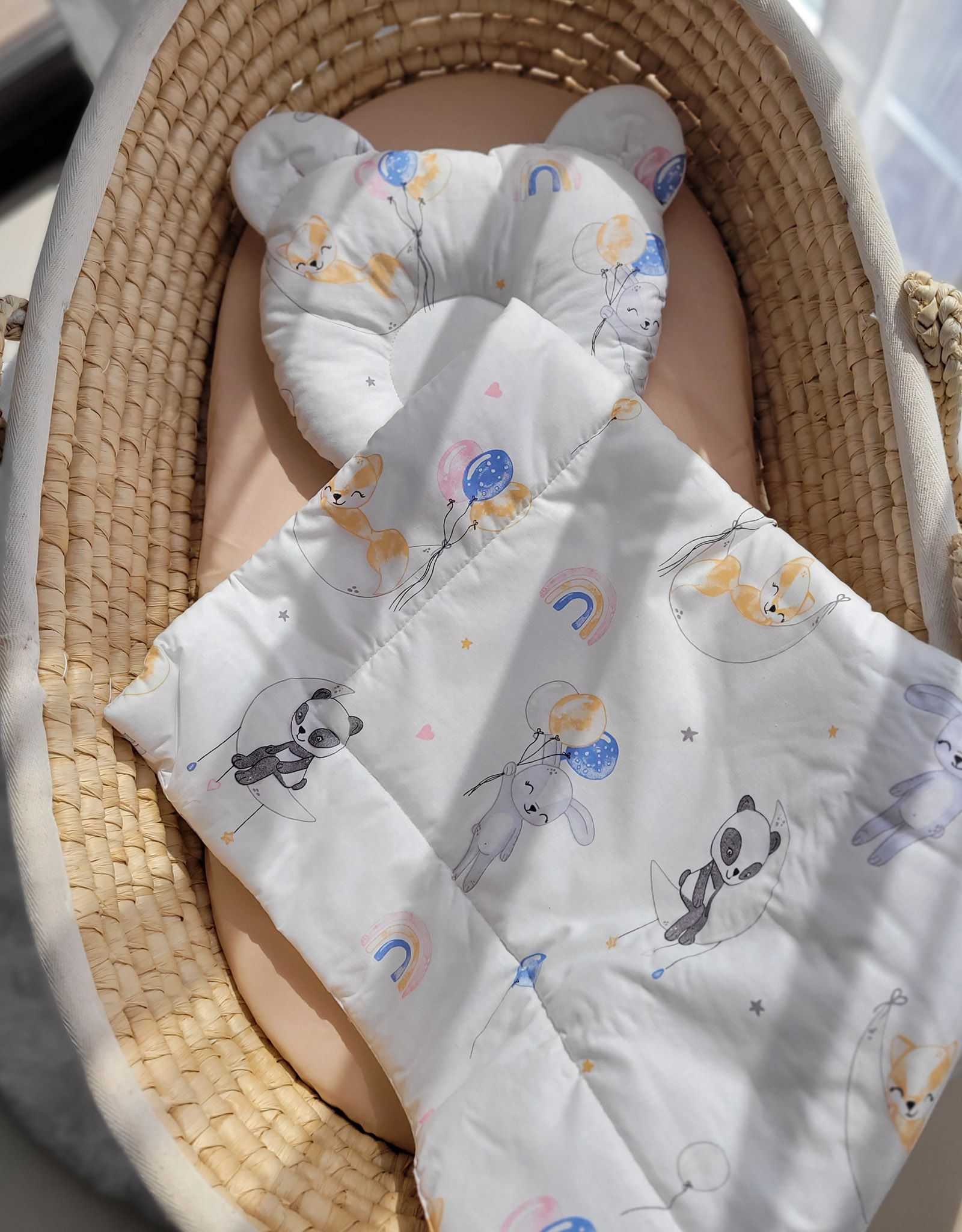 Baby bedding for pram gondola, Moses basket or cot. Made of durable 100% certified cotton. It is nice and pleasant to the touch. Does not irritate your baby’s delicate skin.