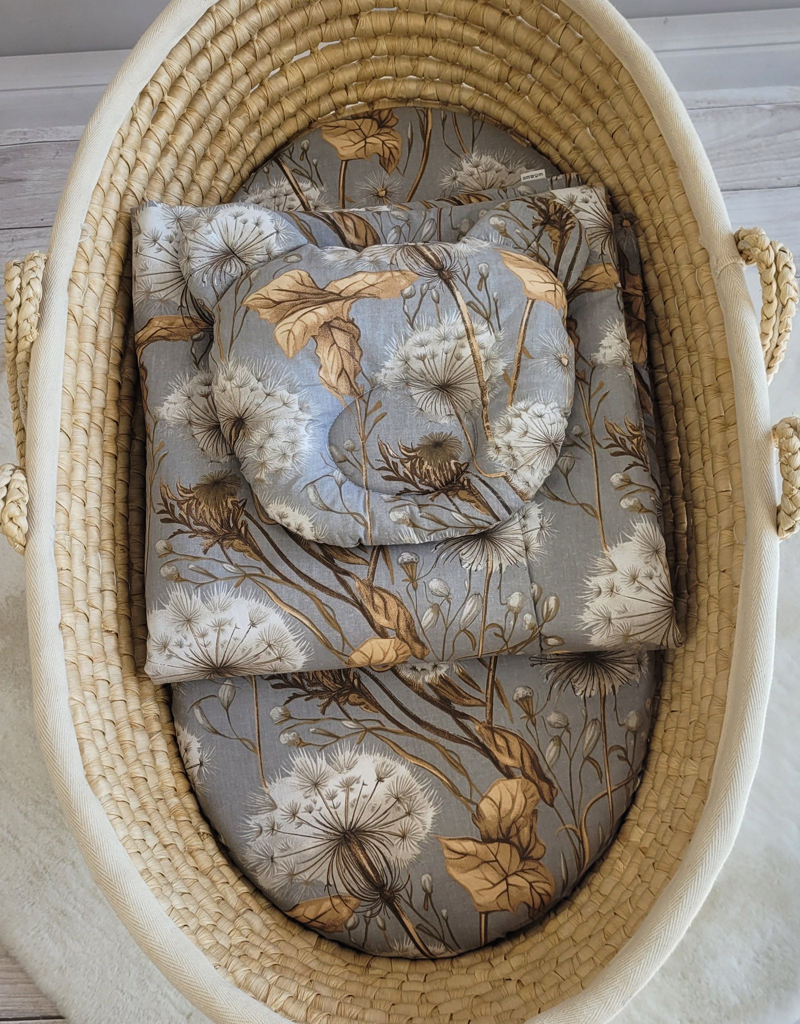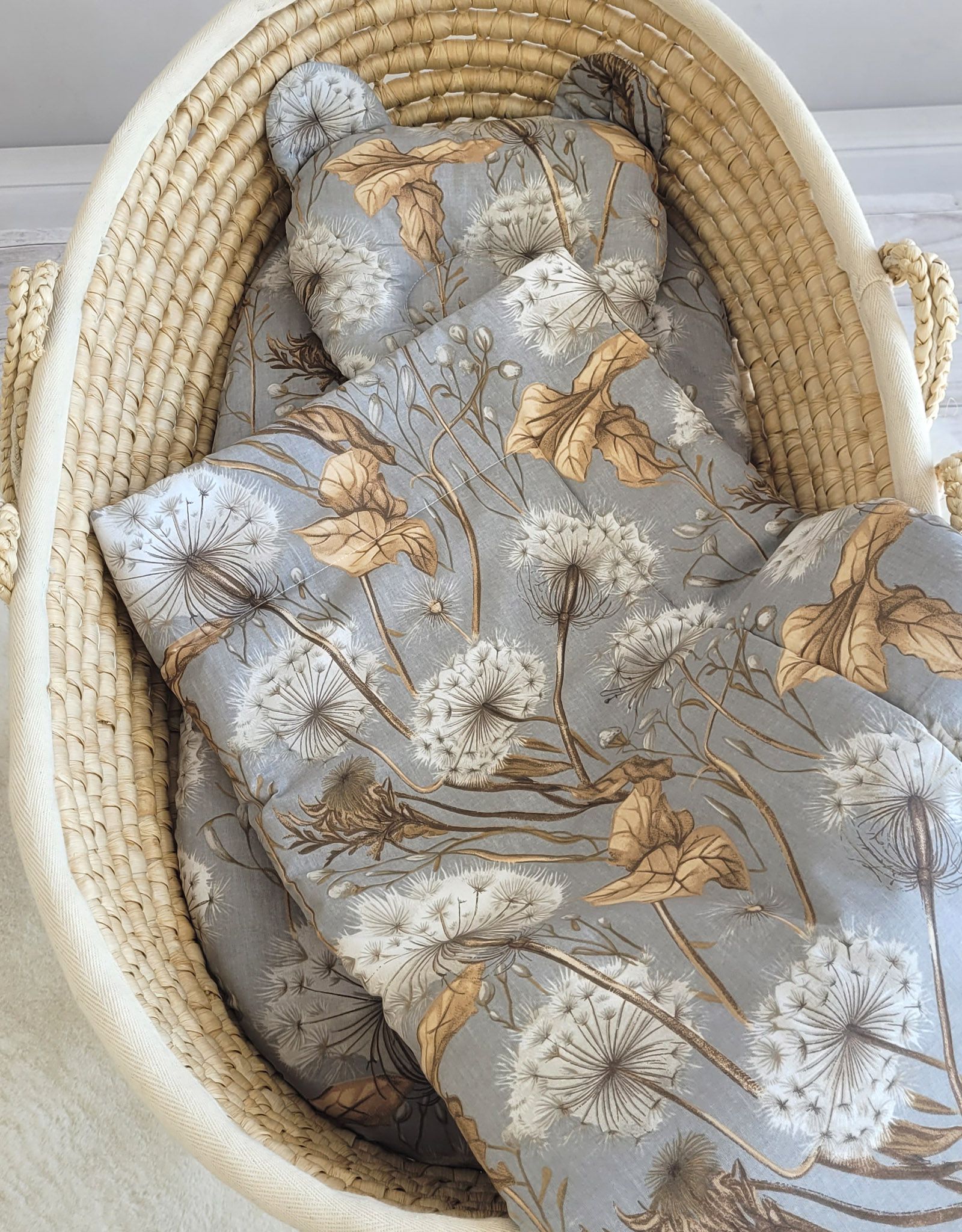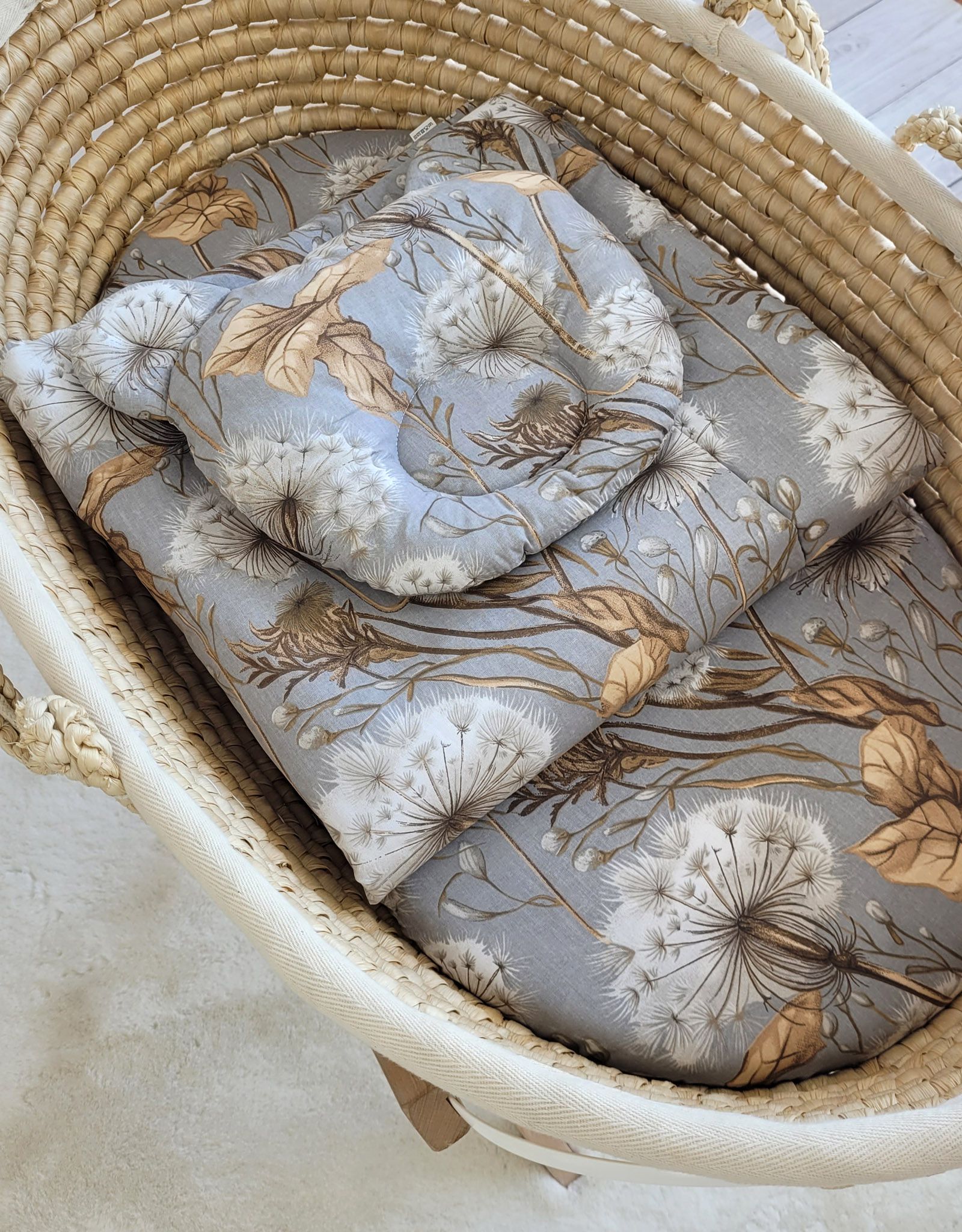 Baby bedding for pram gondola, Moses basket or cot. Made of durable 100% certified cotton. It is nice and pleasant to the touch. Does not irritate your baby’s delicate skin.