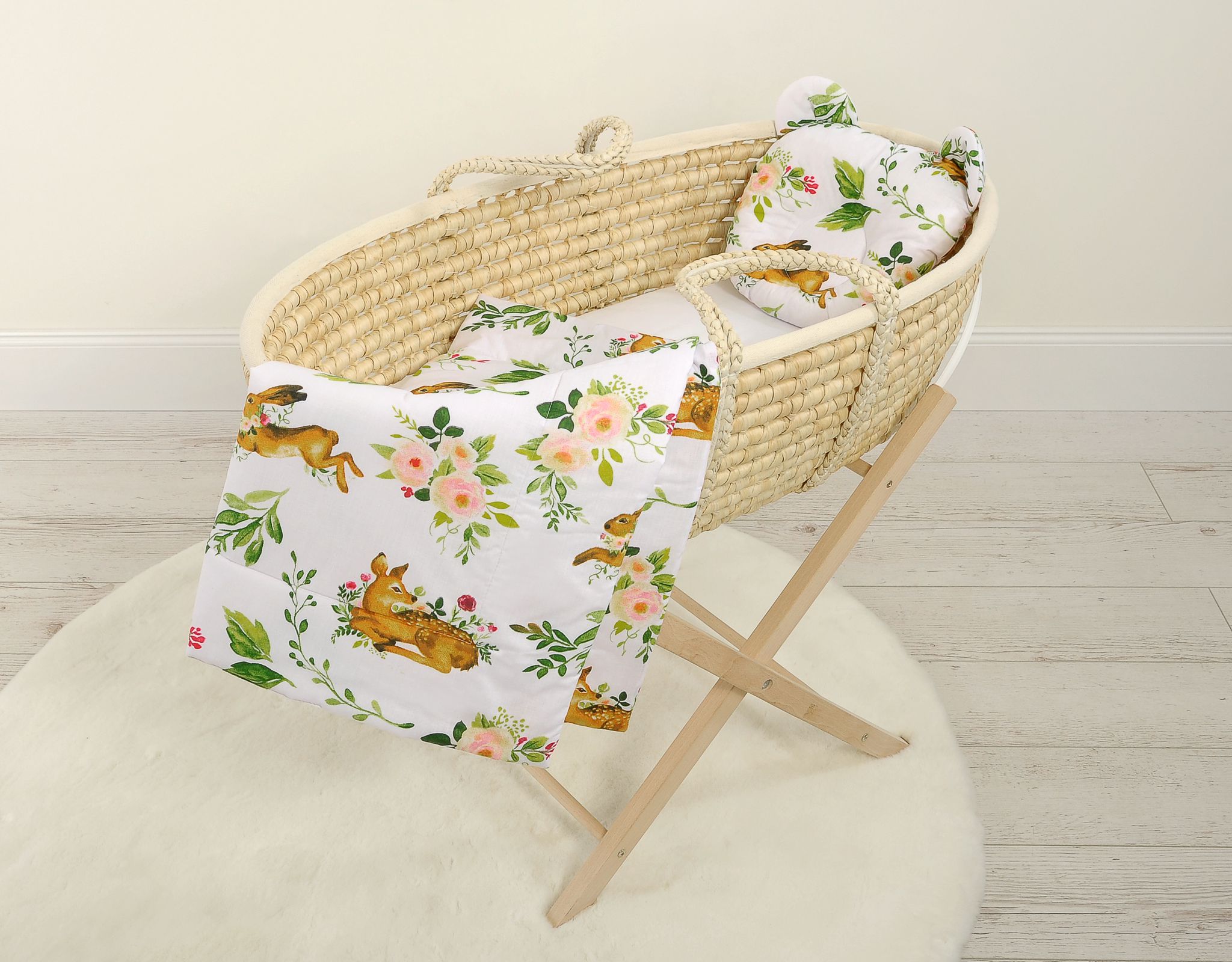 Baby bedding for pram gondola, Moses basket or cot. Made of durable 100% certified cotton. It is nice and pleasant to the touch. Does not irritate your baby’s delicate skin.