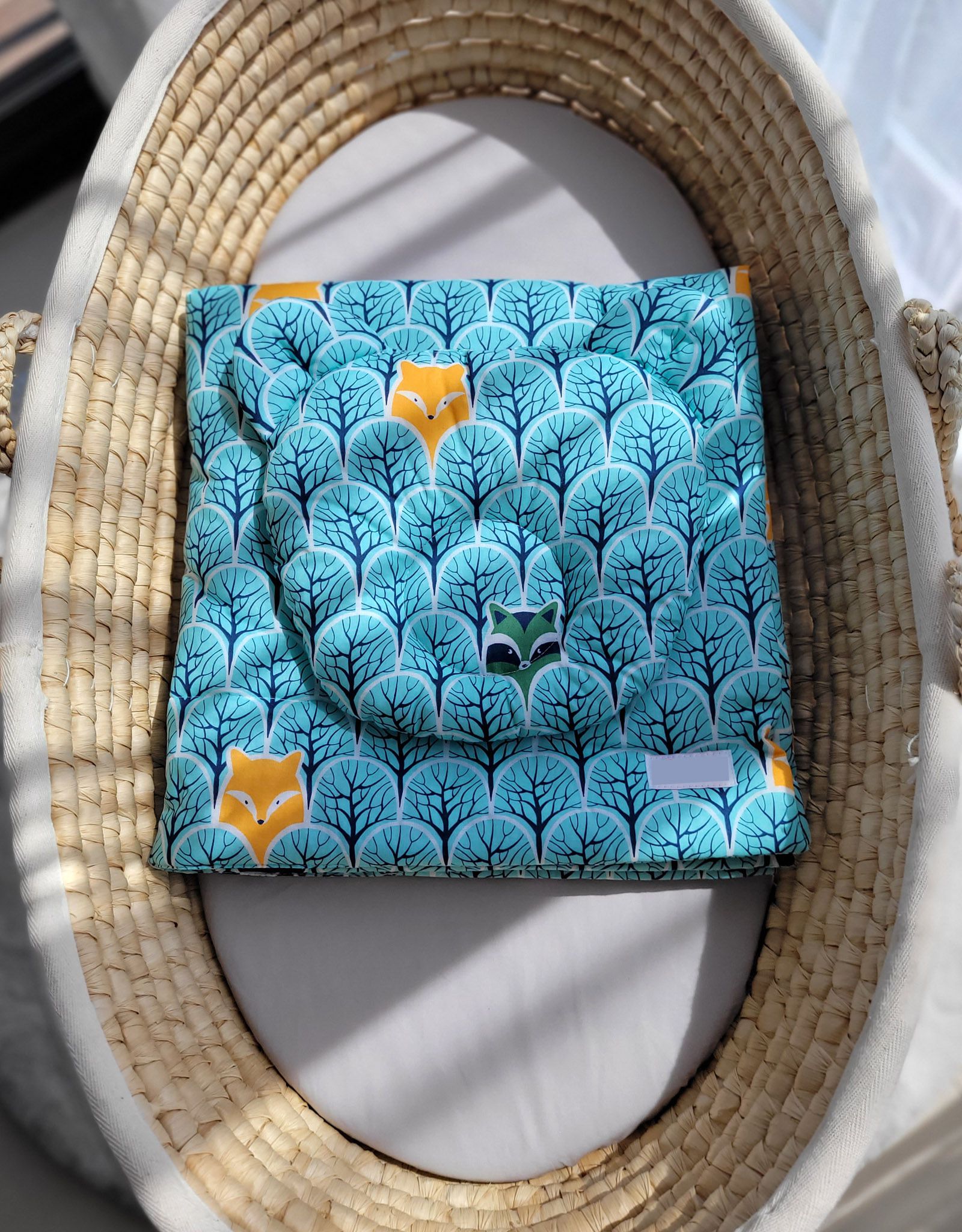 Baby bedding for pram gondola, Moses basket or cot. Made of durable 100% certified cotton. It is nice and pleasant to the touch. Does not irritate your baby’s delicate skin.