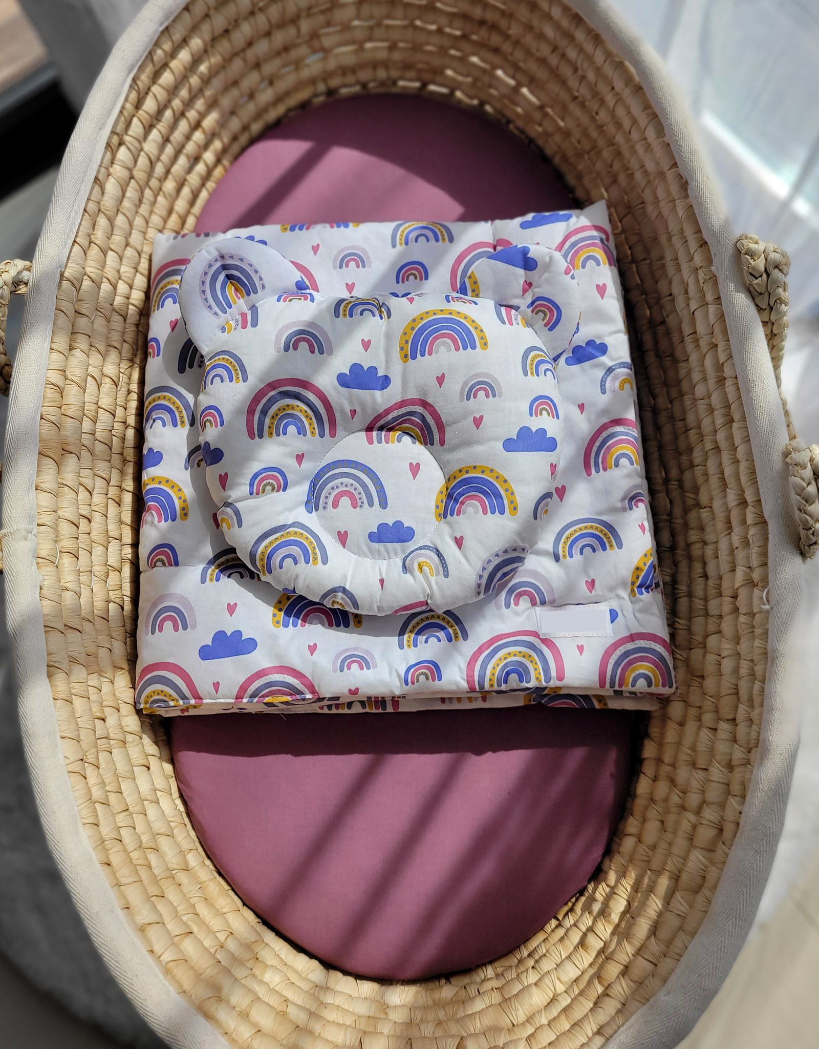 Baby bedding for pram gondola, Moses basket or cot. Made of durable 100% certified cotton. It is nice and pleasant to the touch. Does not irritate your baby’s delicate skin.