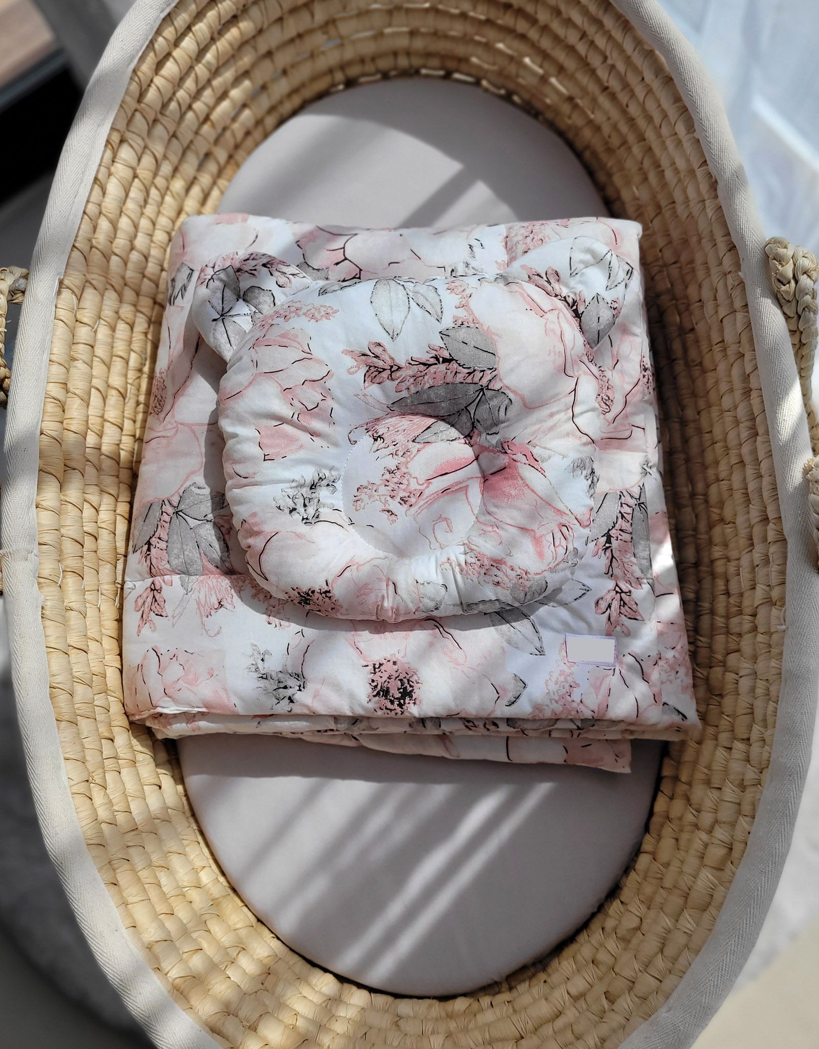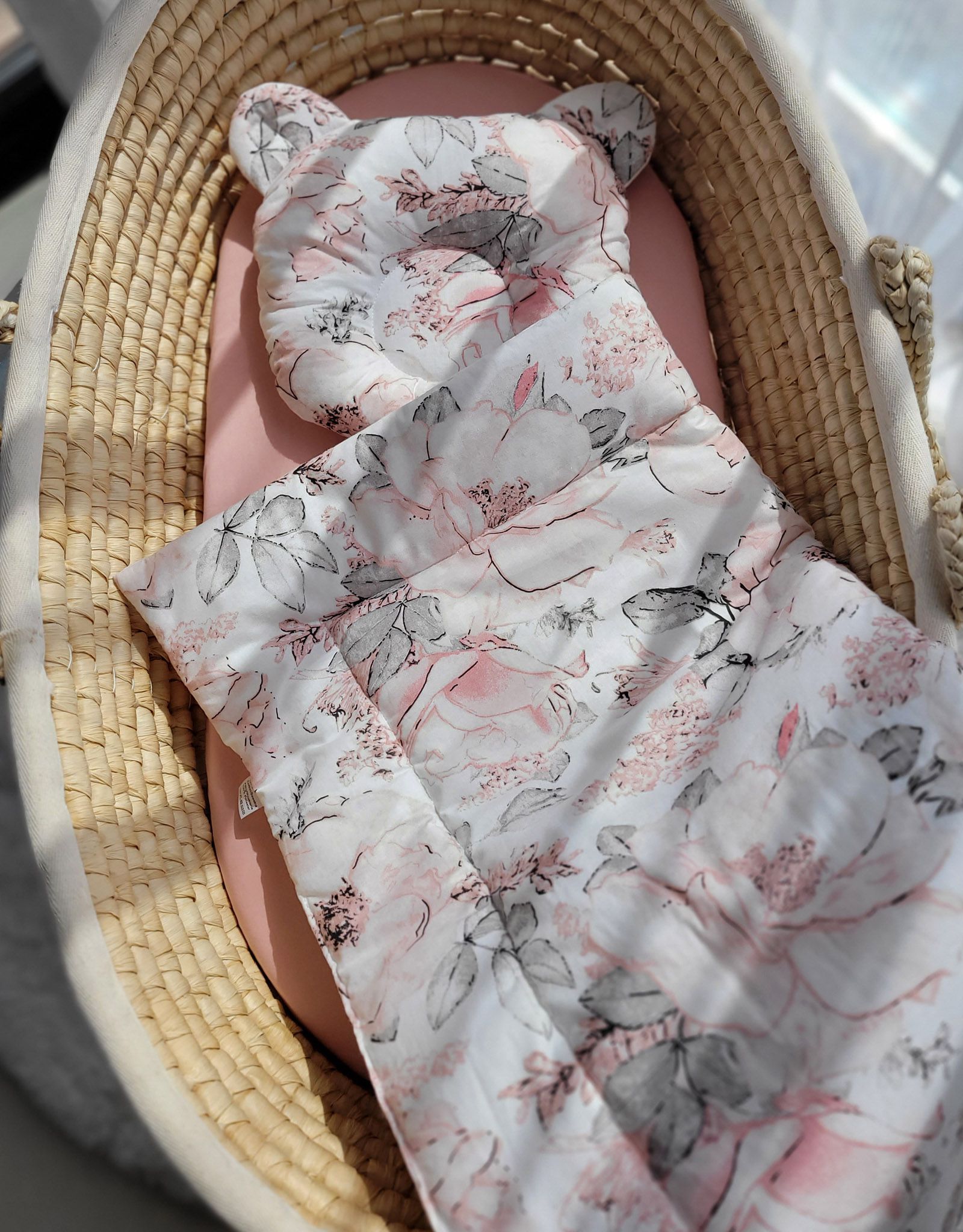 Baby bedding for pram gondola, Moses basket or cot. Made of durable 100% certified cotton. It is nice and pleasant to the touch. Does not irritate your baby’s delicate skin.