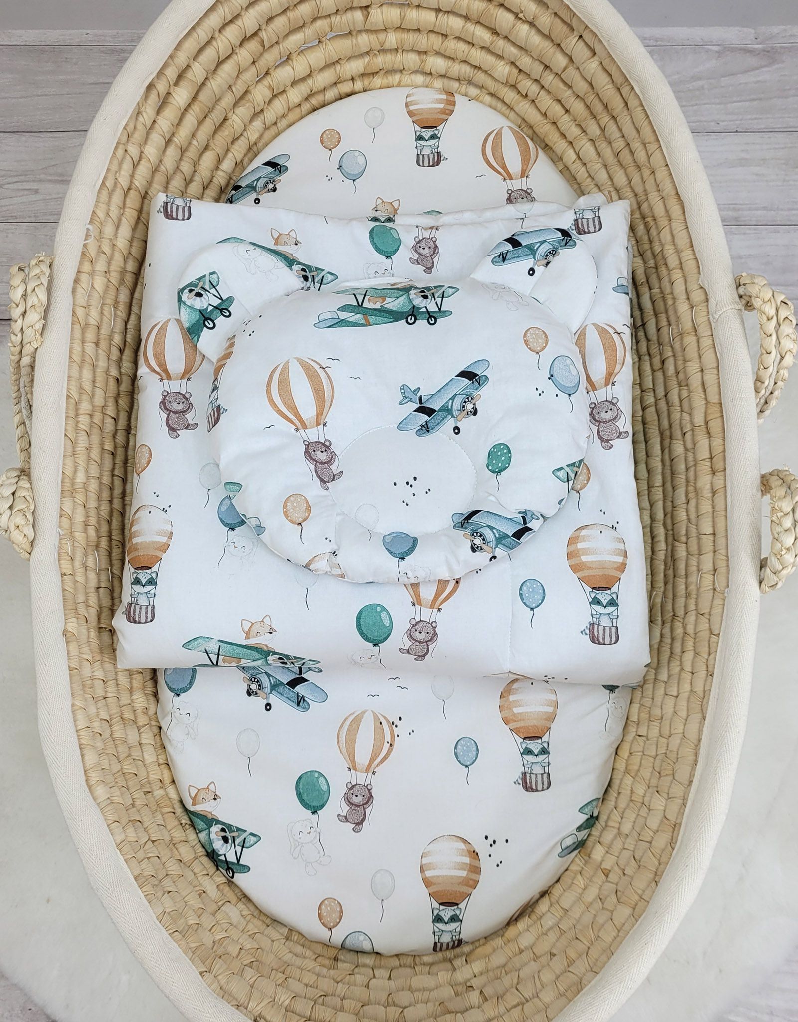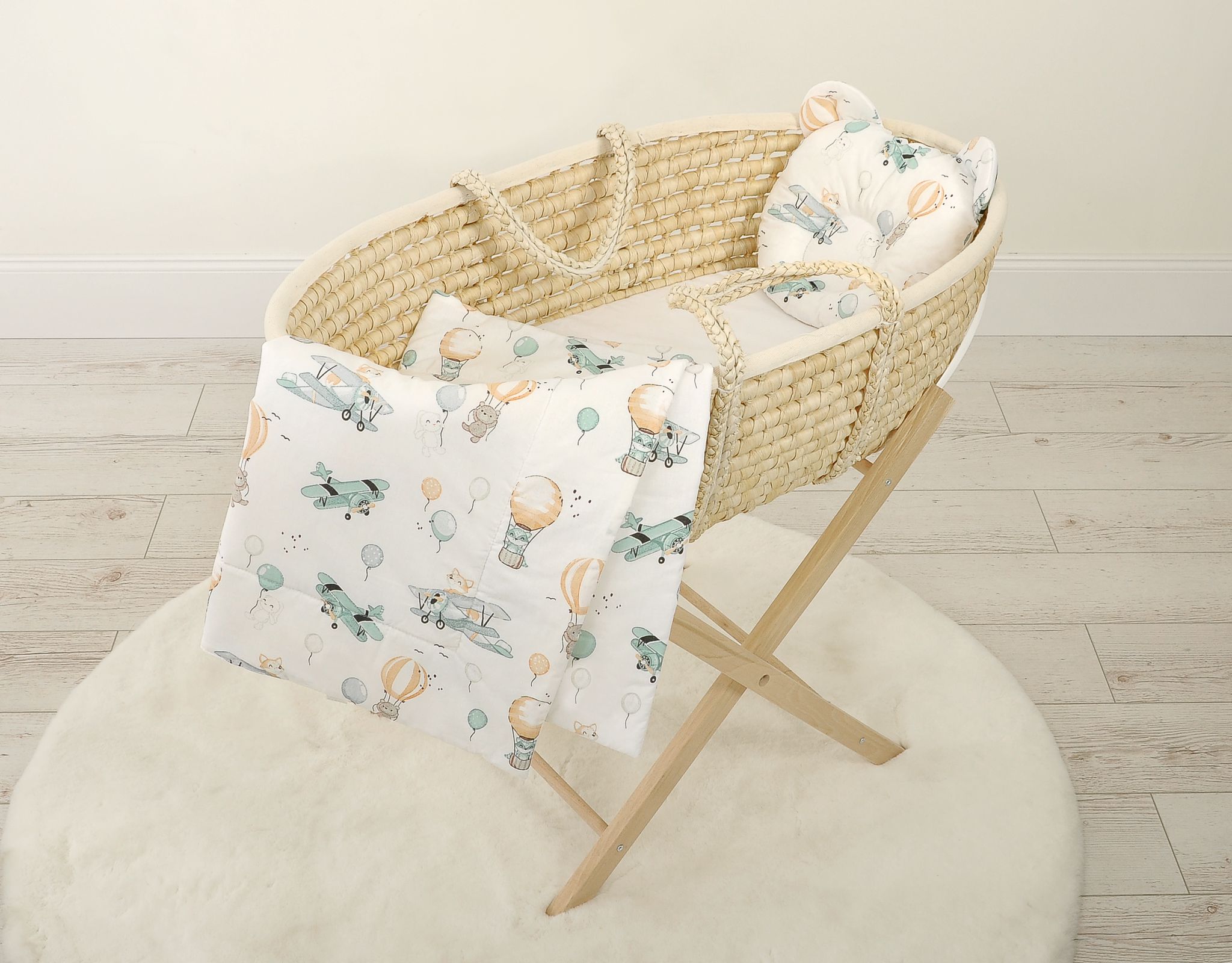 Baby bedding for pram gondola, Moses basket or cot. Made of durable 100% certified cotton. It is nice and pleasant to the touch. Does not irritate your baby’s delicate skin.