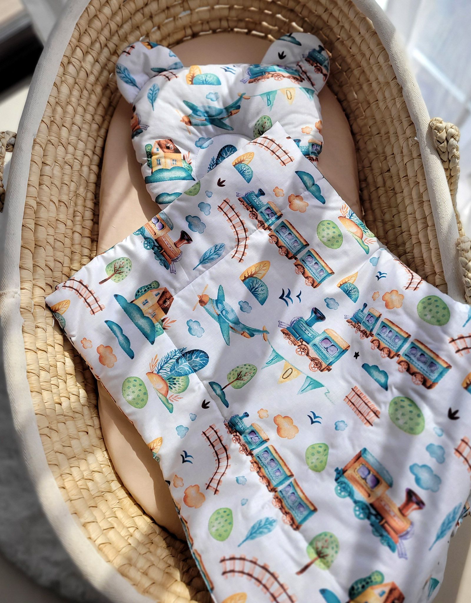 Baby bedding for pram gondola, Moses basket or cot. Made of durable 100% certified cotton. It is nice and pleasant to the touch. Does not irritate your baby’s delicate skin.