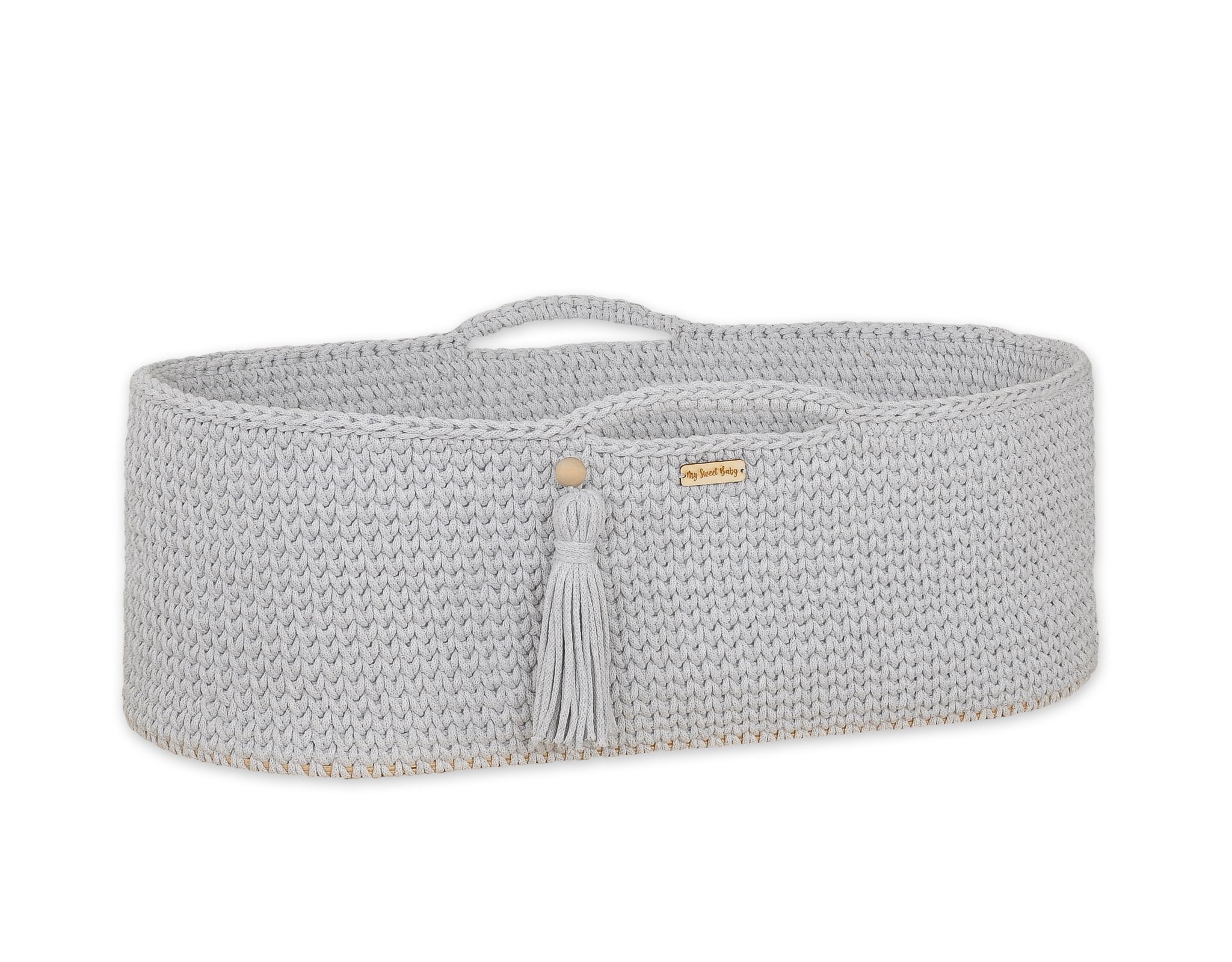 Moses basket BOHO Handmade cotton with mattress – light gray