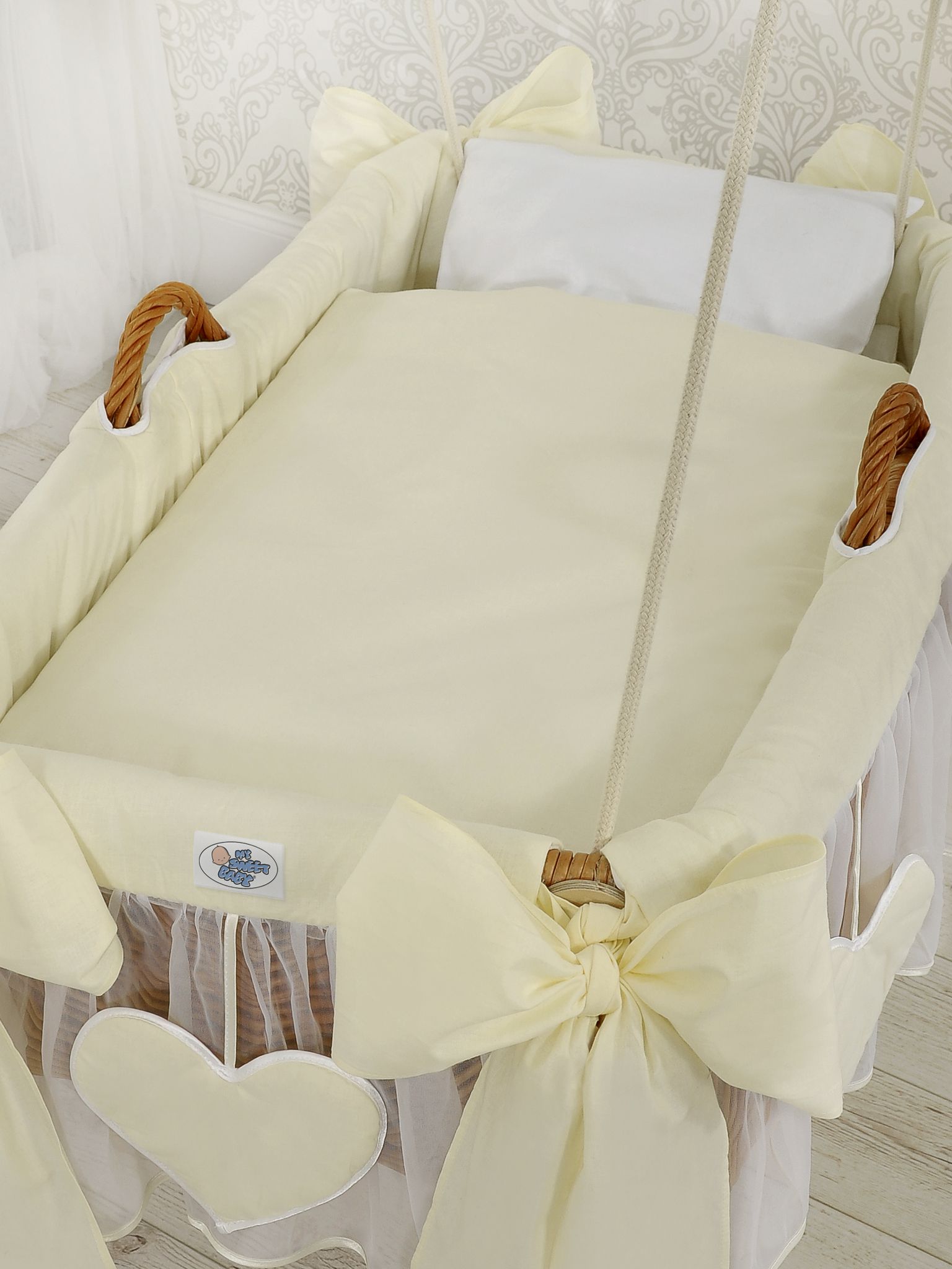 Wicker baby baskets – beautifully hand-woven basket. Cover made 100% cotton. Mattress with removable cover.
