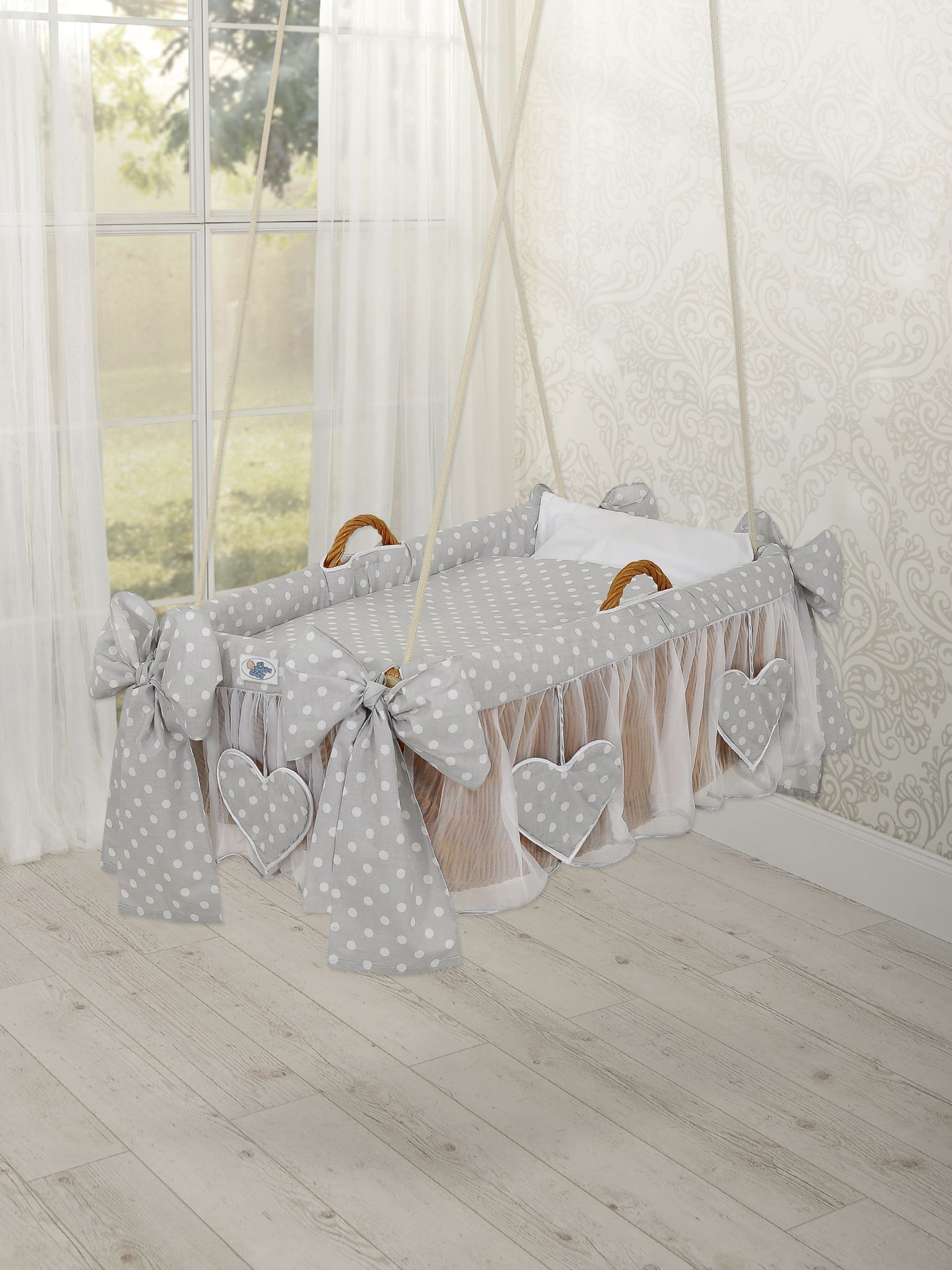 Wicker baby baskets – beautifully hand-woven basket. Cover made 100% cotton. Mattress with removable cover.