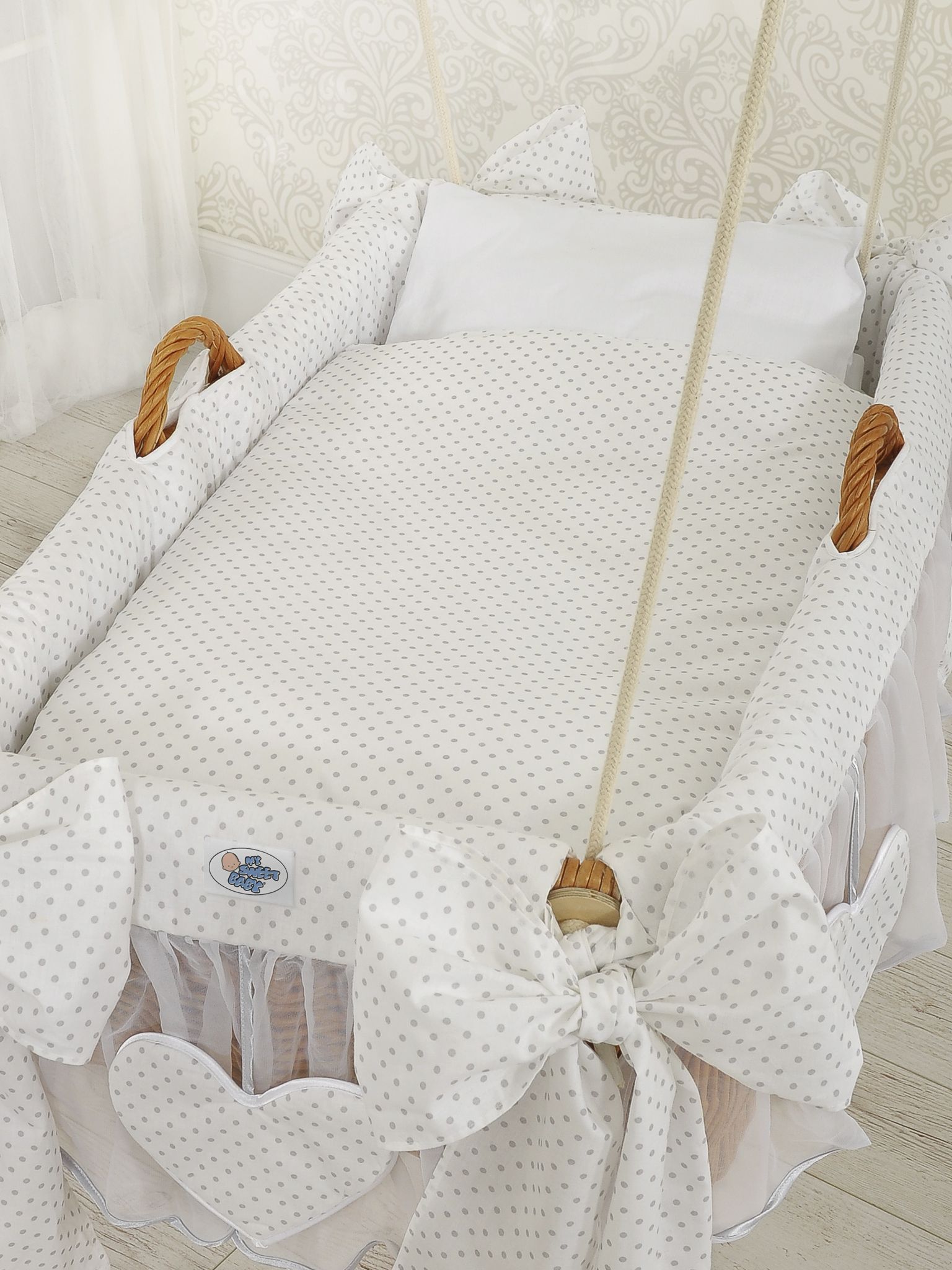 Moses Basket Hanging crib – Grey dots