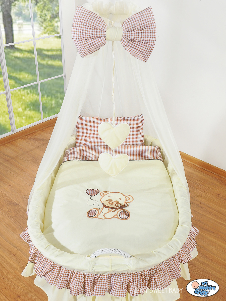 Moses Basket/Wicker drape crib- Bear with bow brown