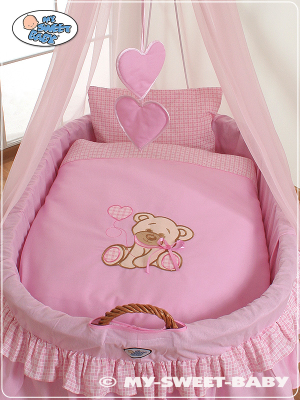 Moses Basket/Wicker drape crib- Bear with bow pink