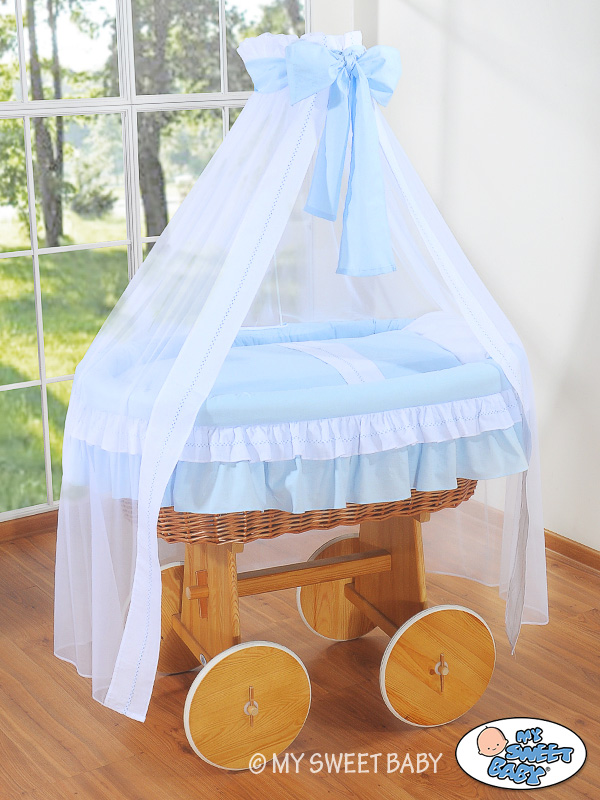 Moses Basket/Wicker drape crib Deluxe- Bellamy blue