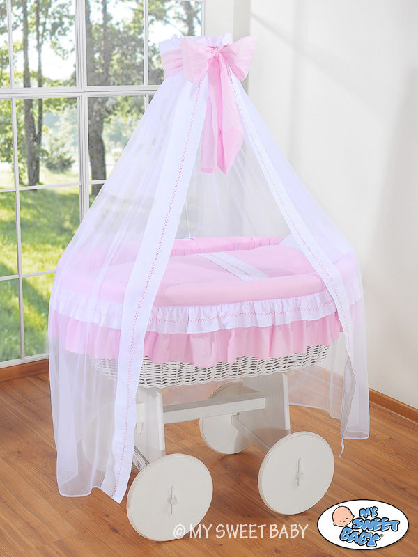 Moses Basket/Wicker drape crib Deluxe- Bellamy pink