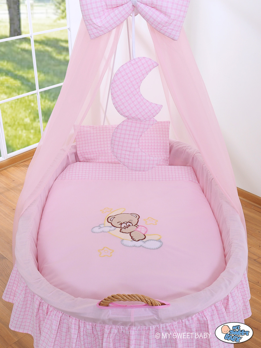 Moses Basket/Wicker drape crib- Bellamy pink