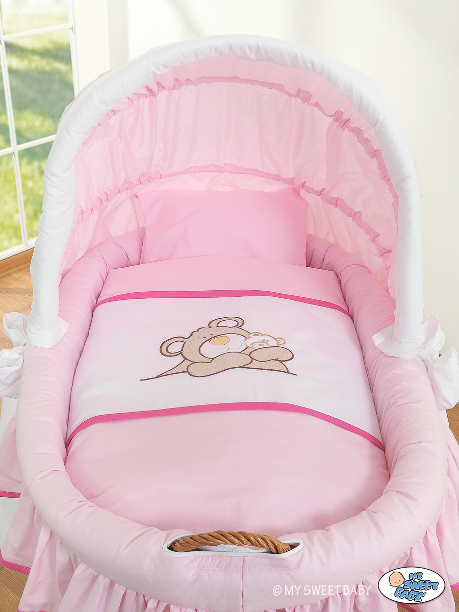 Moses Basket/Wicker hood crib- Teddy Bear Barnaba pink