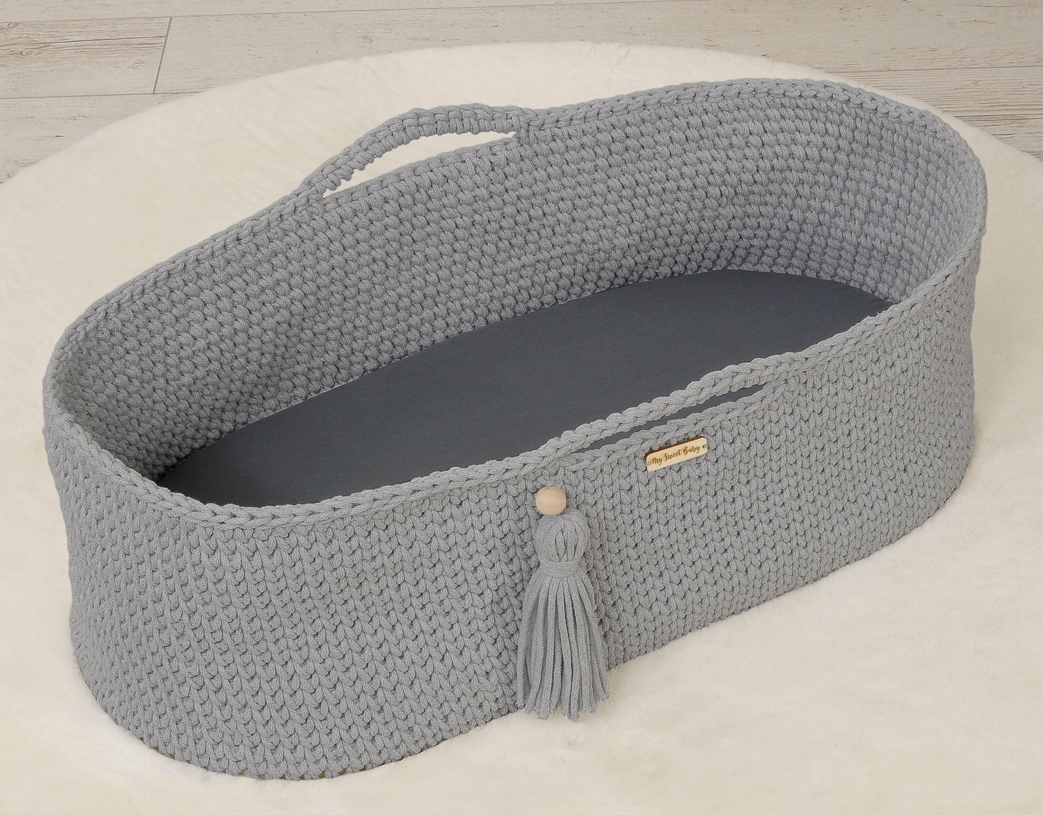 The cotton sheet fits Moses Boho baskets, Moses corn husk baskets and most pram gondola mattresses. Suggested mattress size: 75×35 cm, thickness 3 cm.