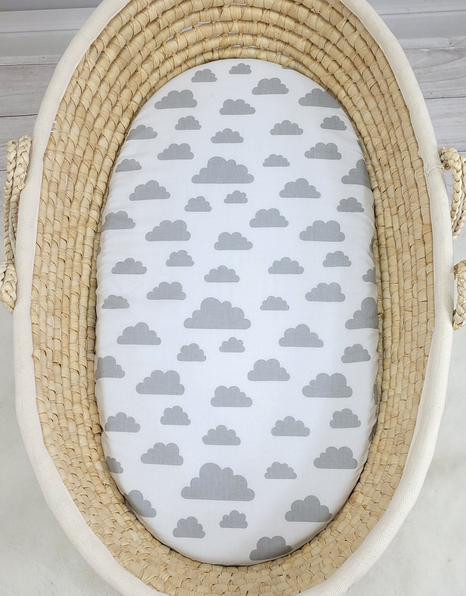 The cotton sheet fits Moses Boho baskets, Moses corn husk baskets and most pram gondola mattresses. Suggested mattress size: 75×35 cm, thickness 3 cm.