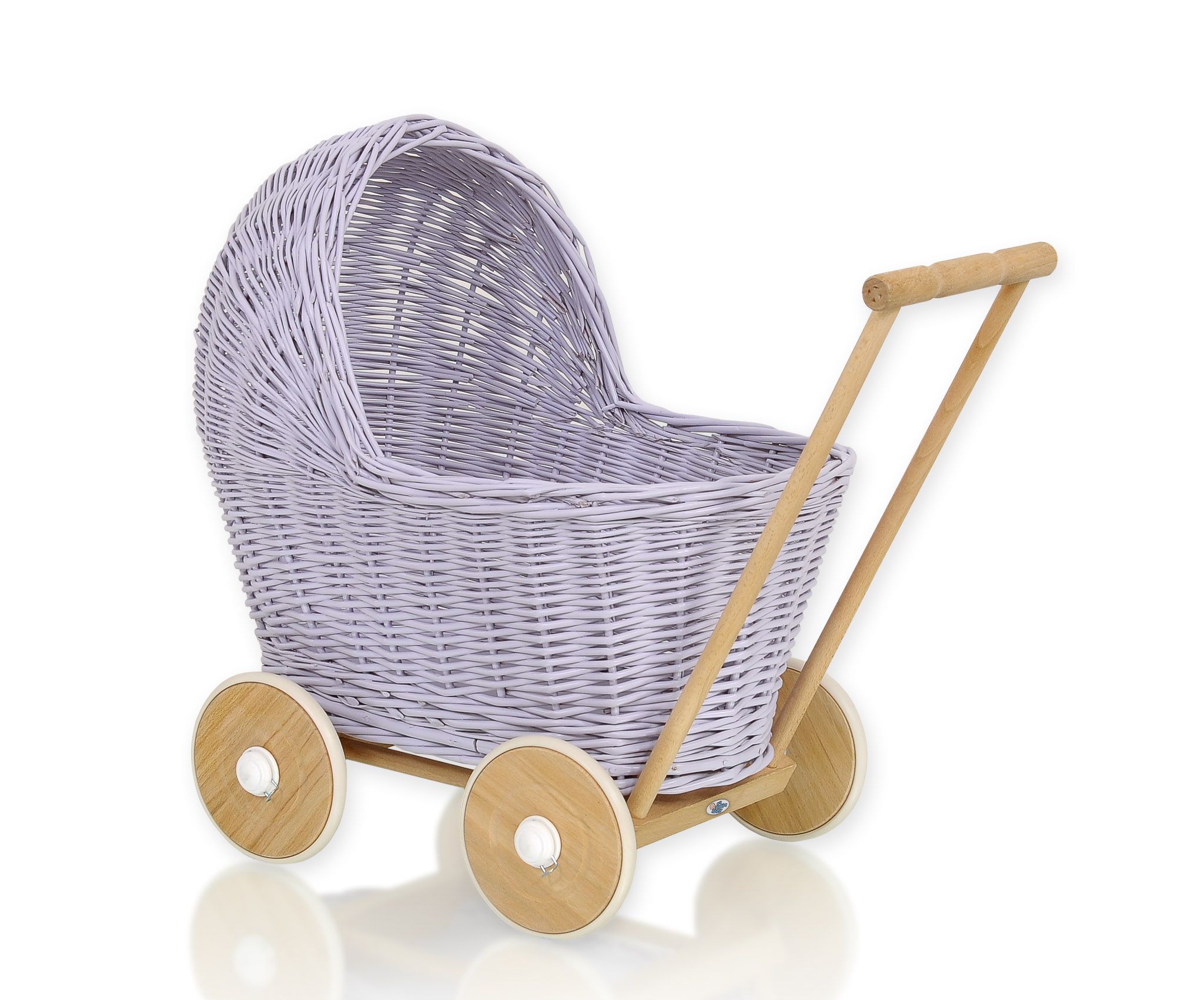 Wicker doll pushchair – made of natural wicker, on a natural wooden chassis with wooden wheels.