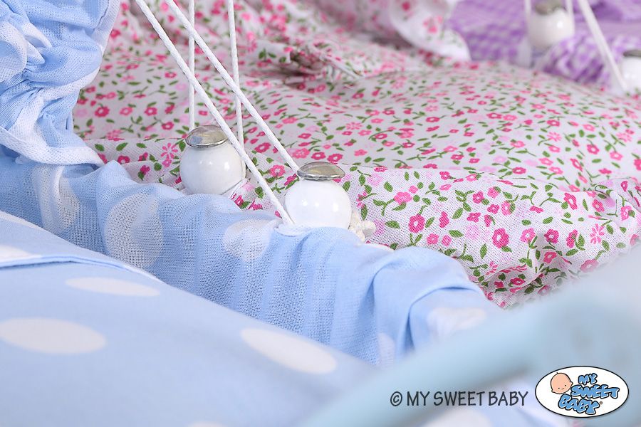The entire pram is additionally lined with cotton padding. For the highest safety, the interior and edges of the pram are protected by an elegant lining, finished with a frill and piping.