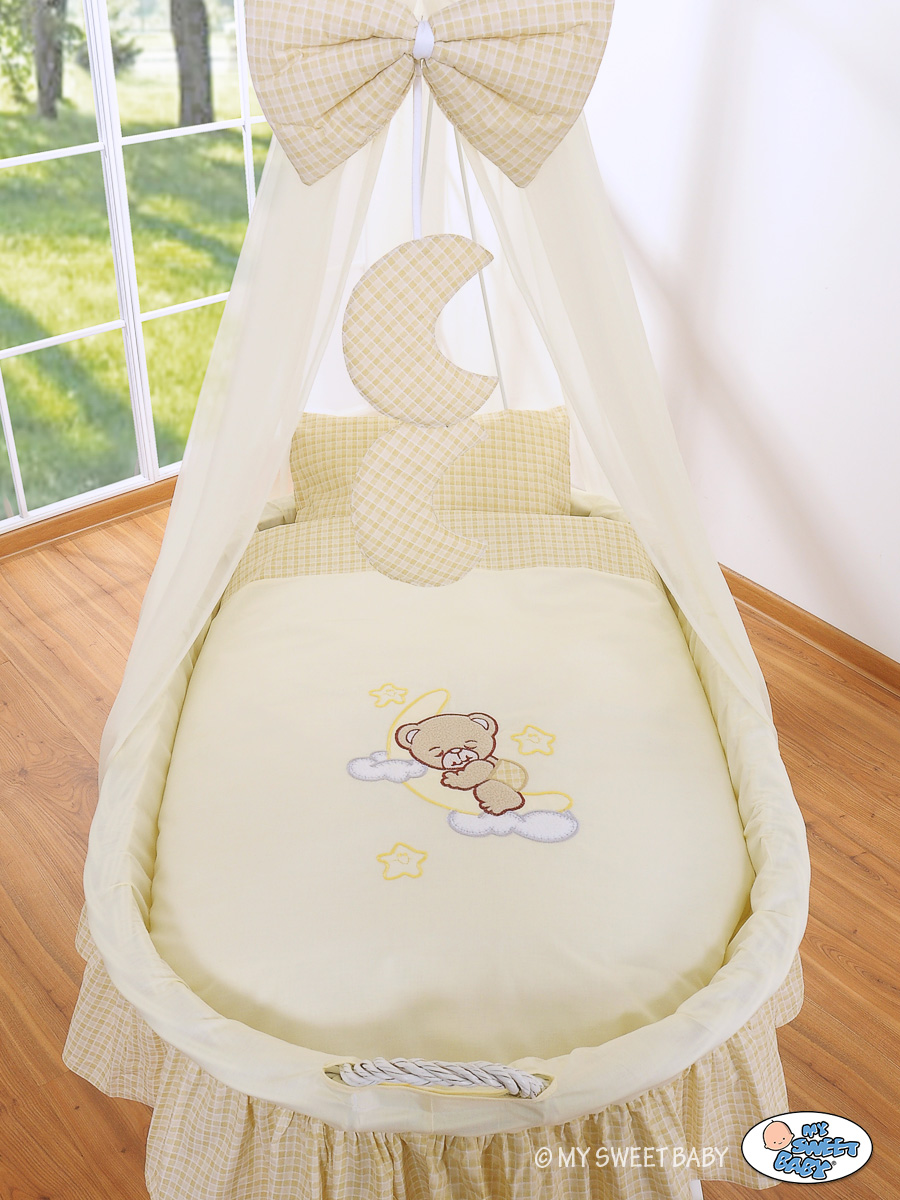 Moses Basket/Wicker crib with hood- Teddy Bear with Bow brown