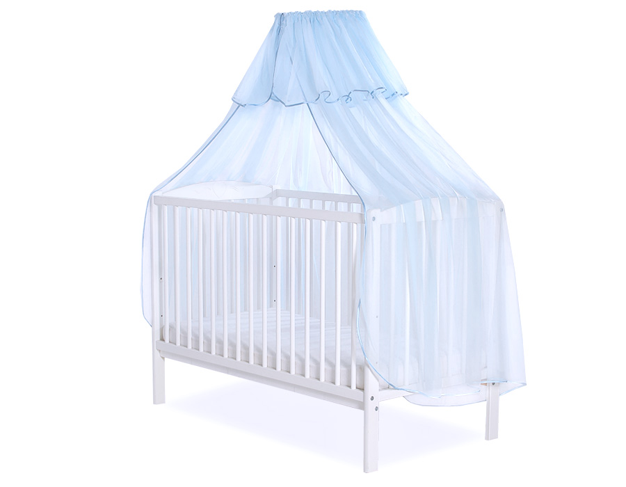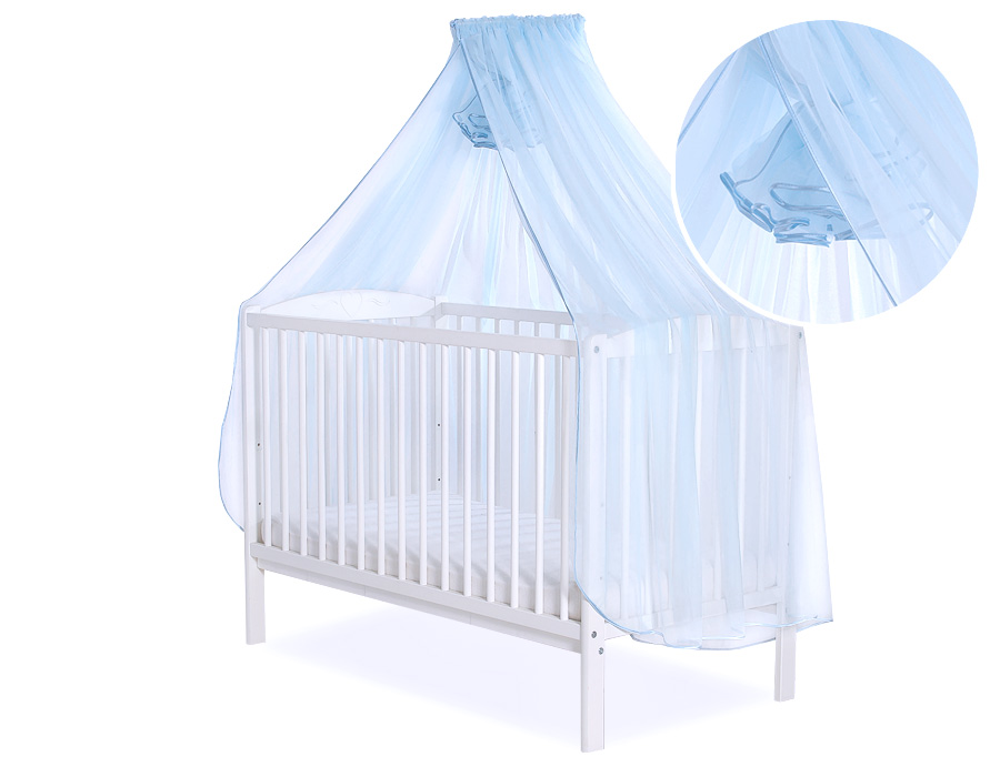 Mosquito net universally suitable for beds 140x70cm and 120x60cm. Suitable for all cots, looks very decorative.