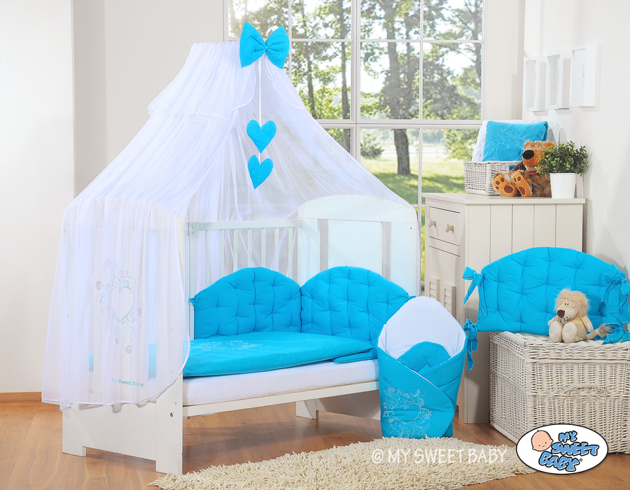 Mosquito net universally suitable for beds 140x70cm and 120x60cm. Suitable for all cots, looks very decorative.