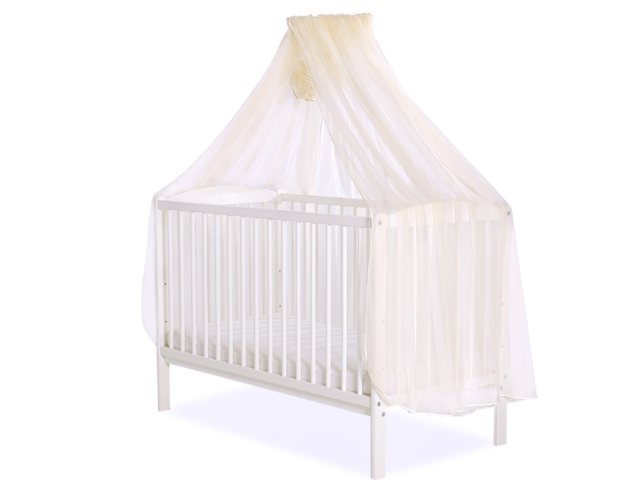 Mosquito net universally suitable for beds 140x70cm and 120x60cm. Suitable for all cots, looks very decorative.
