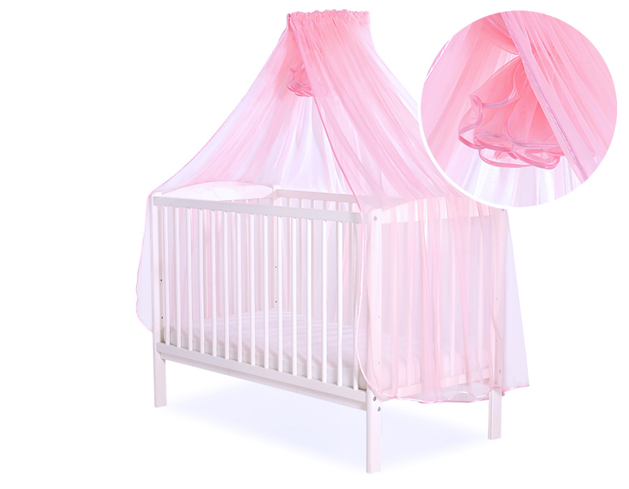 Mosquito net universally suitable for beds 140x70cm and 120x60cm. Suitable for all cots, looks very decorative.
