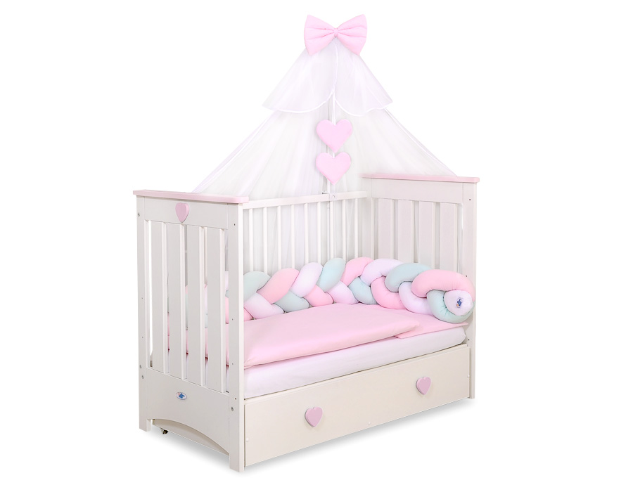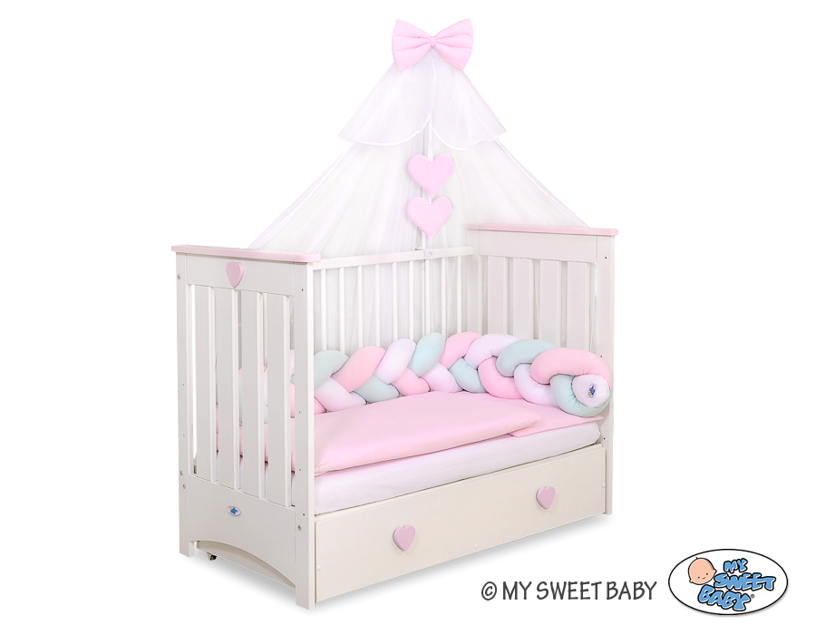 Mosquito net universally suitable for beds 140x70cm and 120x60cm. Suitable for all cots, looks very decorative.