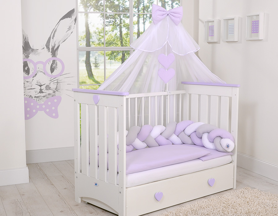 Mosquito net universally suitable for beds 140x70cm and 120x60cm. Suitable for all cots, looks very decorative.