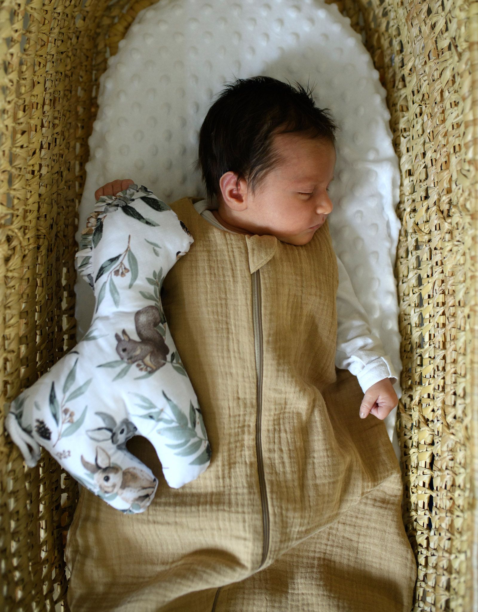 Comfortable muslin baby sleeping bag. Double layered sleeping bag with anatomical rounded shape.