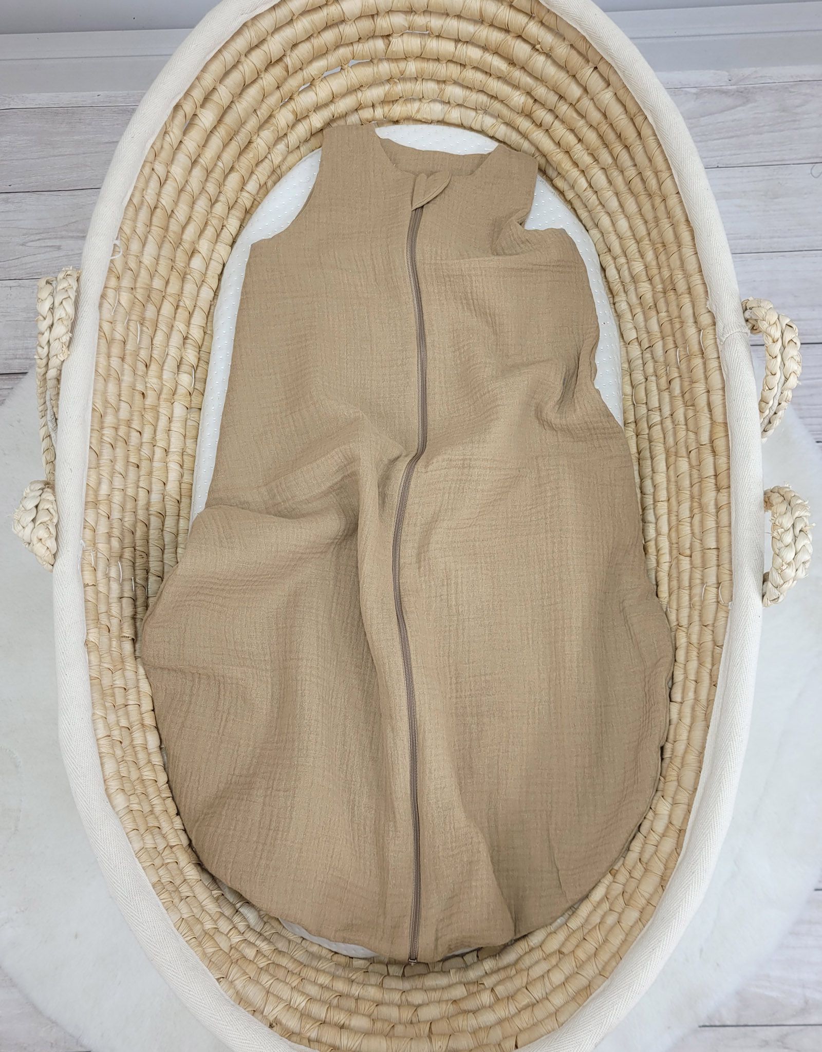 Lightweight muslin baby sleeping bag is made of durable 100% certified cotton crepe muslin. Muslin is nice and pleasant to touch. It does not irritate the delicate baby skin. At the same time it is extremely easy to use.