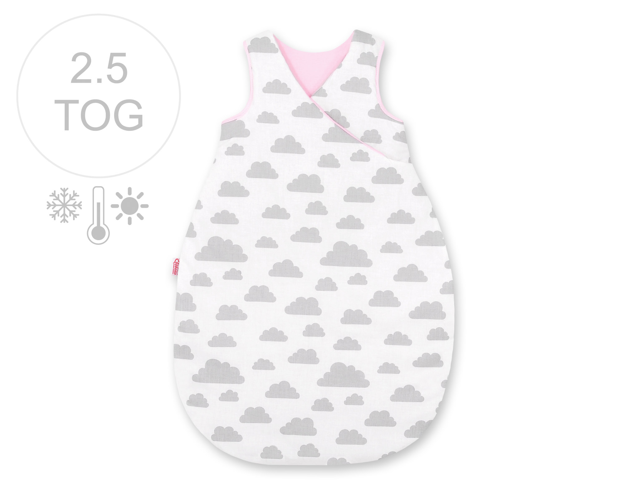 Sleeping bag 75 cm all-season with warming- clouds gray/pink