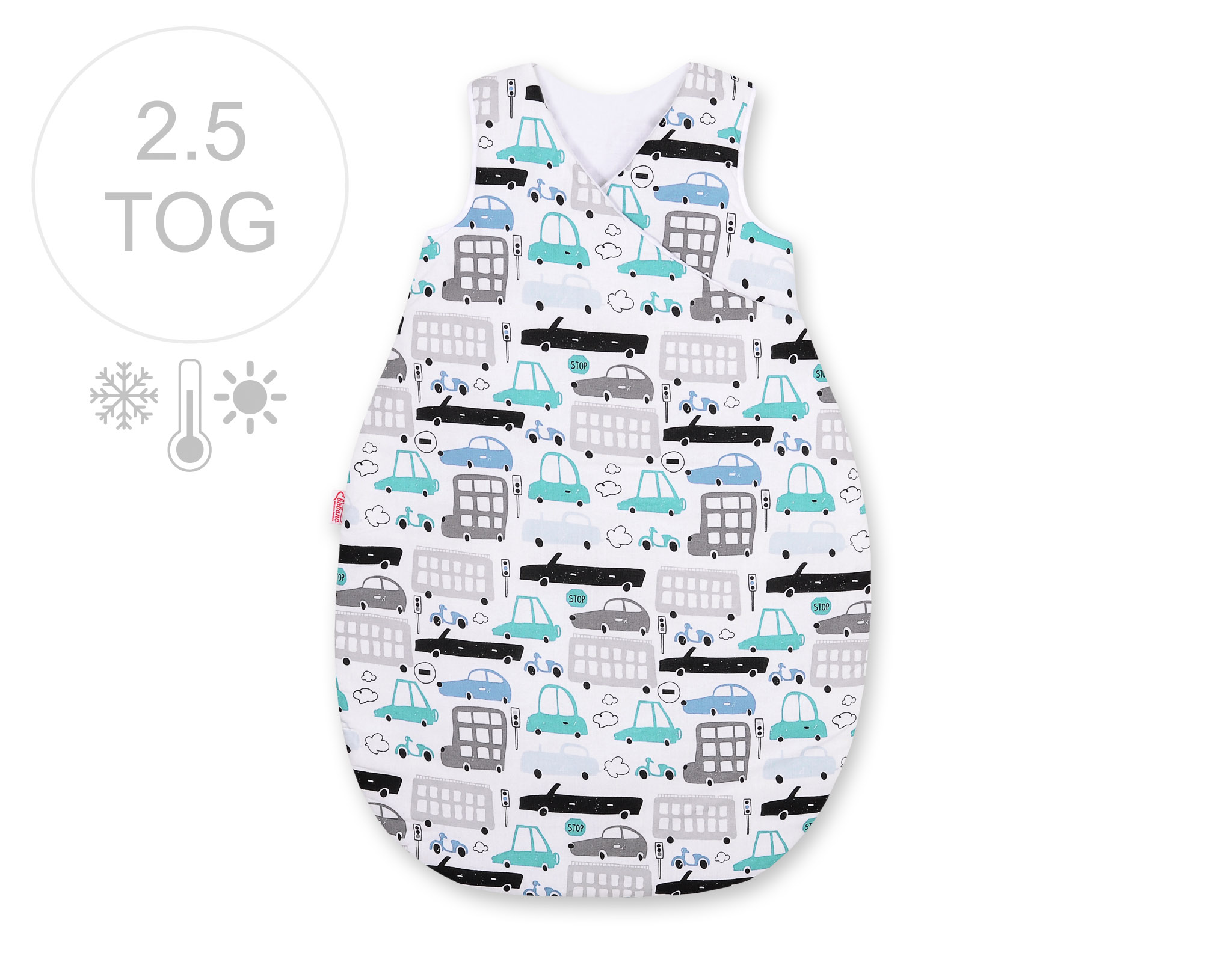Sleeping bag 75 cm all-season with warming- gray and turquoise cars