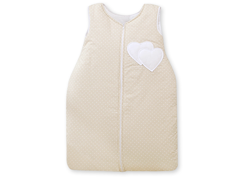 Sleeping bag- Hanging hearts white polka dots on beige